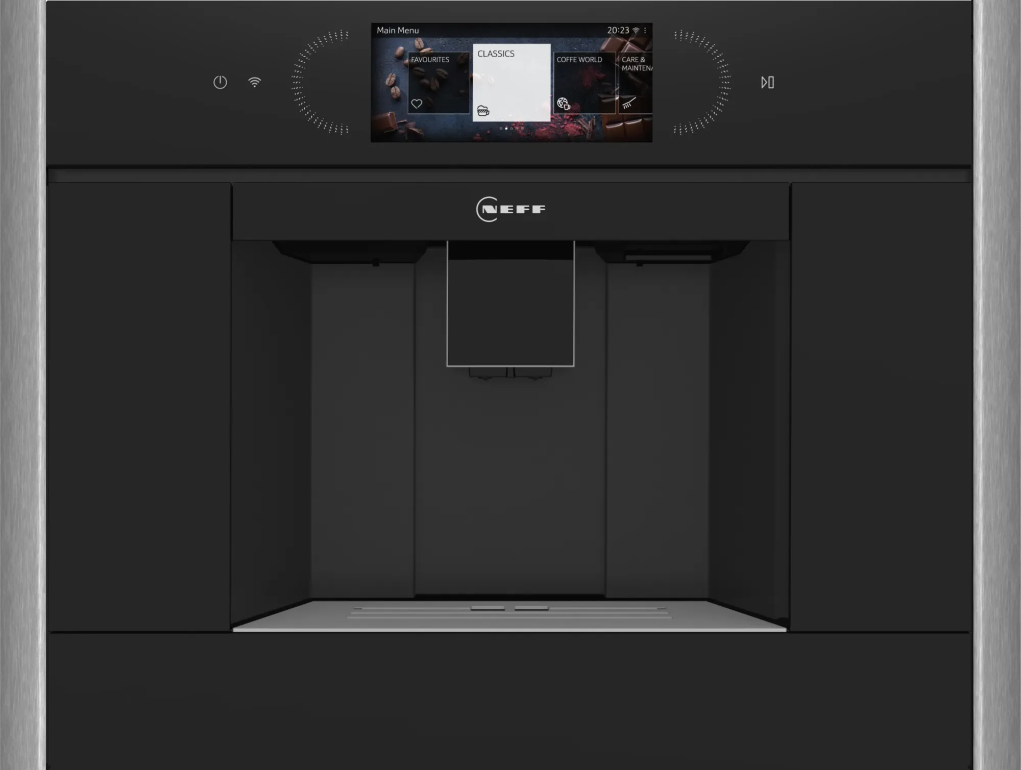 Neff CL4TT11N0. Type de produit: Machine à expresso, Type de cafetière: Entièrement automatique, Capacité du réservoir d'eau: 2,4 L, Type d'entrée à café: Café en grains, Réservoir de café: Tasse, Capacité en tasses: 2 tasses, Broyeur intégré. Type d'écran: TFT, Couleur du produit: Noir, Acier inoxydable