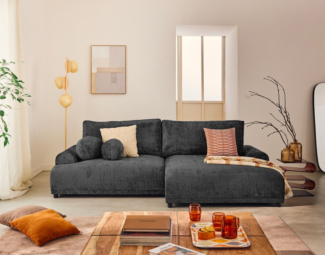 | Libellé | Nelly - canapé d'angle droit 4 places convertible avec coffre en velours texturé |