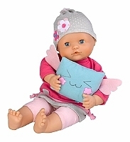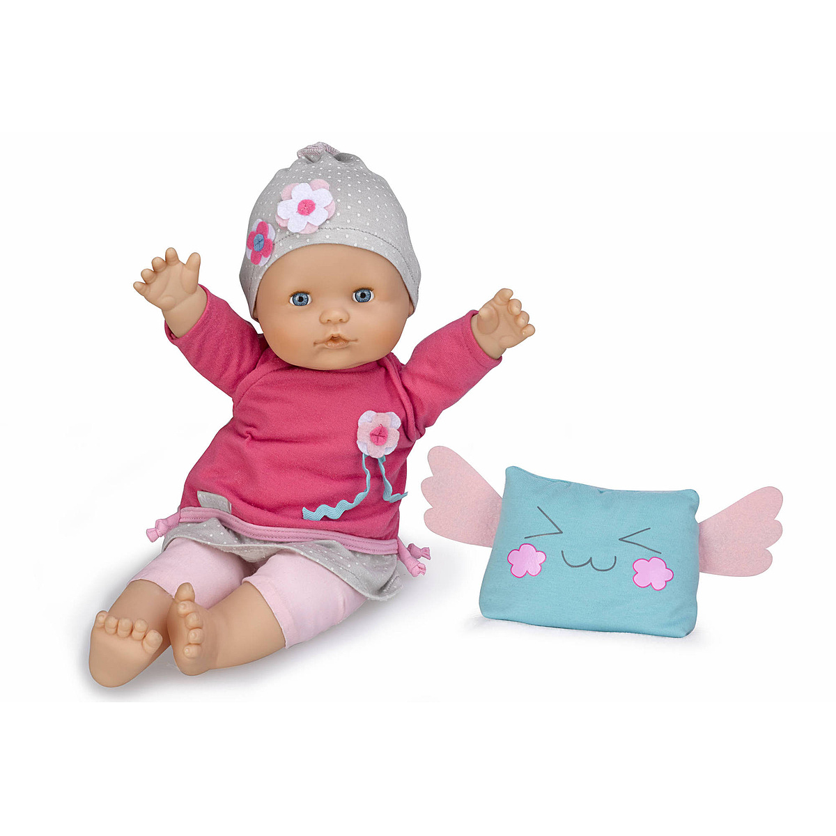 Ce poupon au corps souple de 42cm est idéal pour les tout-petits. Il tend les bras pour quon le serre dans ses bras. Un coussin inclus.