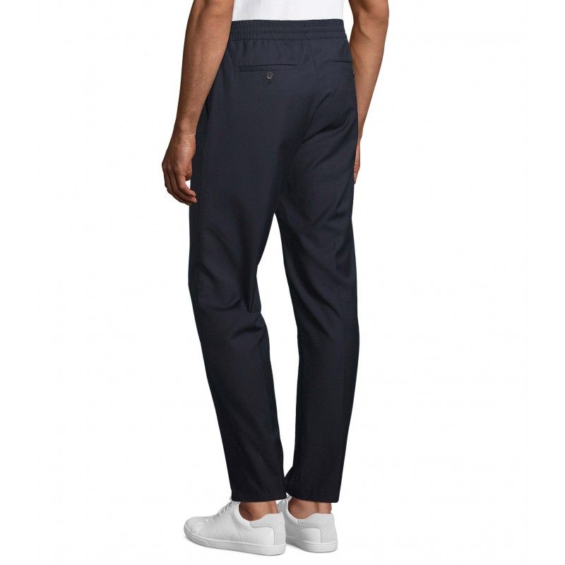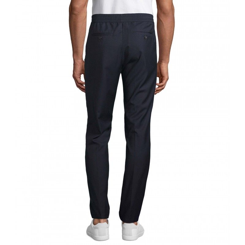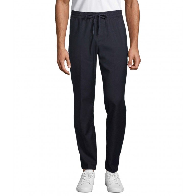 Pantalon de costume moderne Confort d'un jogging Ceinture élastiquée Cordon plats en coton avec embouts ton sur ton Fermeture à glissière 2 poches frontales à l'italienne 2 poches dos passepoilées Coupe droite, bas légèrement resserré