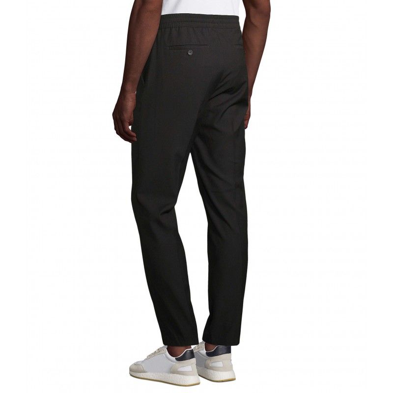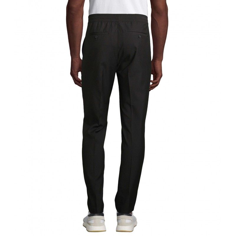 Pantalon de costume moderne Confort d'un jogging Ceinture élastiquée Cordon plats en coton avec embouts ton sur ton Fermeture à glissière 2 poches frontales à l'italienne 2 poches dos passepoilées Coupe droite, bas légèrement resserré