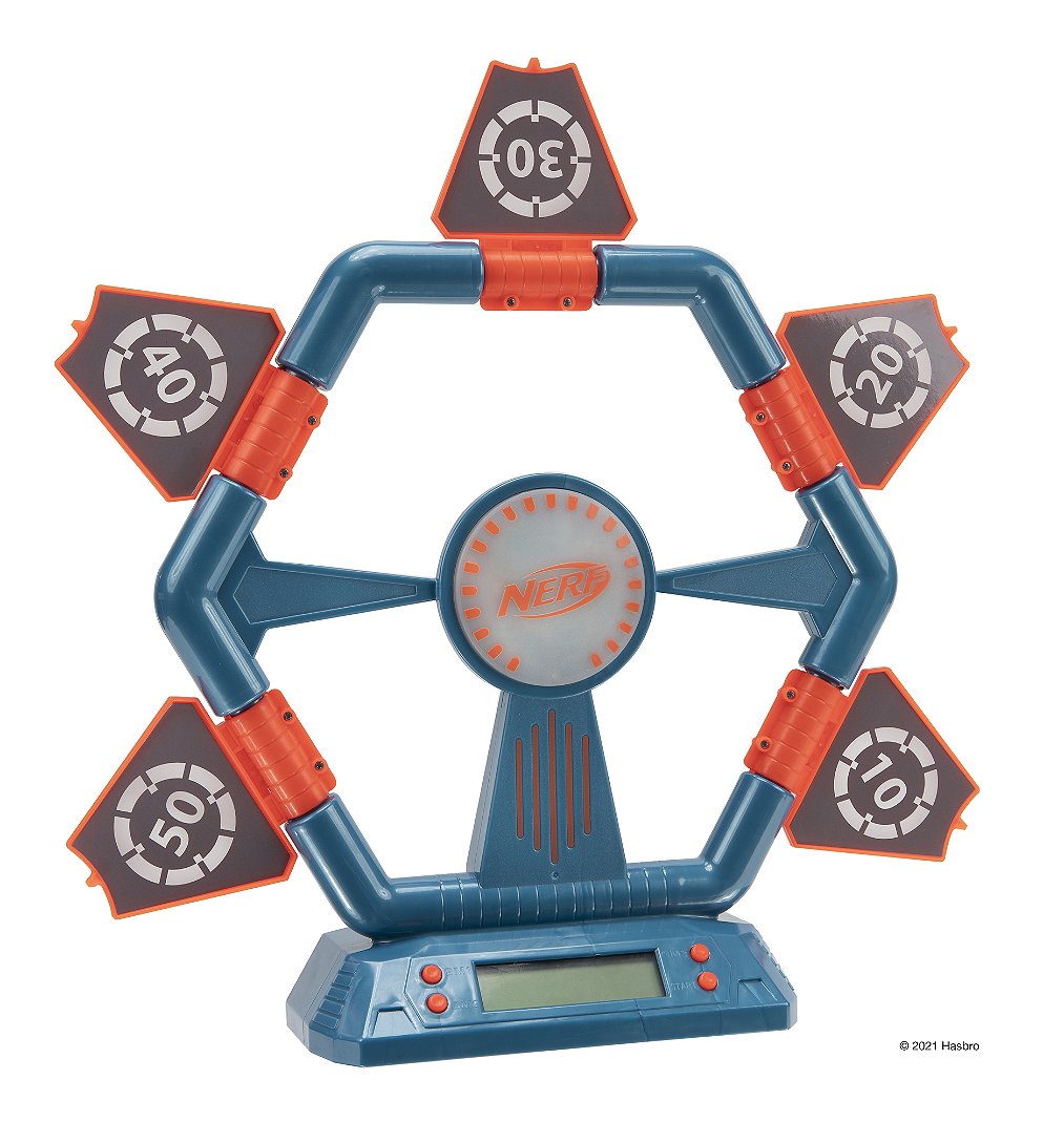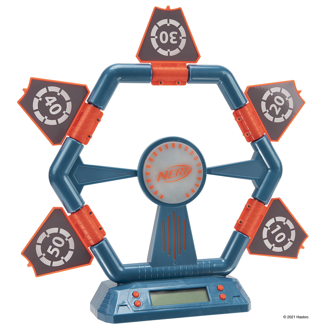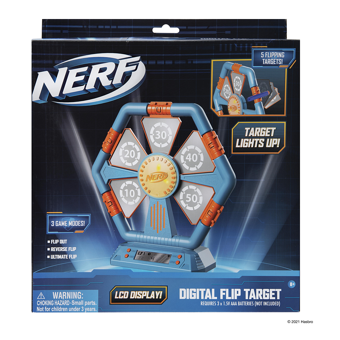 Perfectionnez vos tirs et développez votre adresse avec la cible électronique Nerf Flip ! Visez les 5 panneaux qui indiquent les scores. La cible dispose de 3 modes de jeu afin de changer si vous jouez seul ou avec des amis. ll faudra faire preuve de précision afin de remporter la partie. L'entrainement est la clé pour devenir un vrai tireur d'élite. Donnez à votre enfant l'occasion de s'améliorer où et quand il le souhaite avec la cible électronique Nerf. Un accessoire indispensable afin de jouer avec ses pistolets Nerf ! Nécessite 3 piles LR03 non incluses.