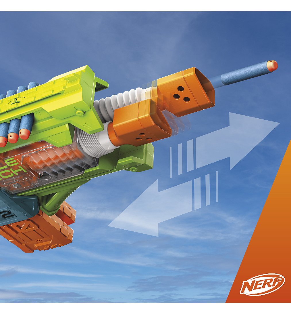 Plus produit BLASTER MOTORISÉ DOUBLE PUNCH NERF ELITE 2.0 AVEC CANONS ALTERNATIFS RAPIDES : Deux canons ! Le blaster Double Punch Nerf Elite 2.0 a 2 canons qui se