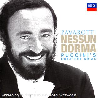 Nessun dorma - Les plus grands airs de Puccini Decca continue pour la rentrée les festivités qui marquent le 150ième anniversaire de Giacomo Puccini en décembre 2008. Avec en tête d'affiche Luciano Pavarotti, ces deux nouvelles références feront le bonheur des tous les fans de l'opéra. En premier lieu, sous le titre emblématique « Nessun dorma », une compilation des plus fameux airs pour ténor des plus grands opéras de Puccini : Turandot, La Bohème, Tosca, Madama Butterfly, Manon Lescaut, La fanciulla del West. Que du plus populaire, en 70 minutes!