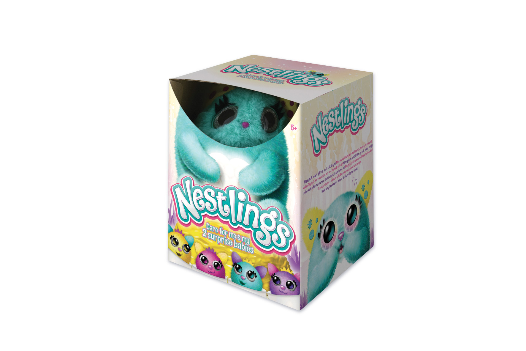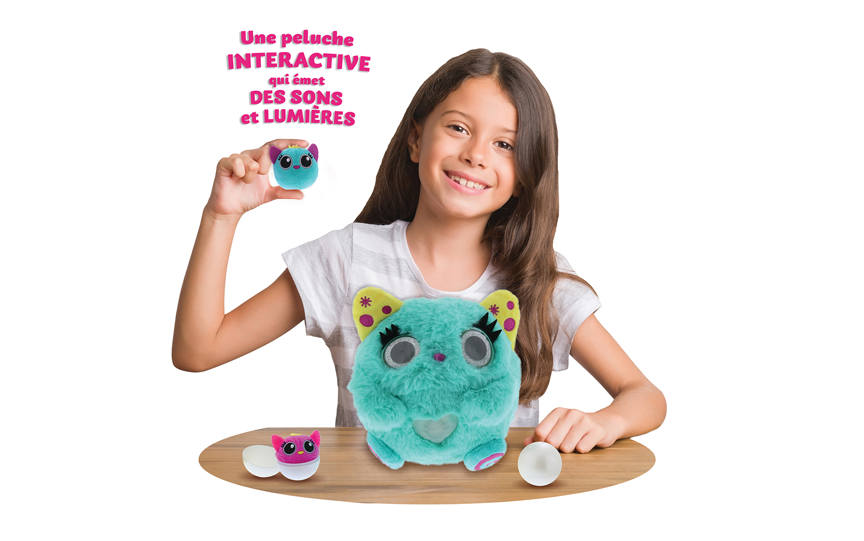 Prends soin de cette adorable peluche intéractive auw changements d'humeur ! Incroyableelle fait nâitre 2 petits que tu connectes à leur maman pour les élever !