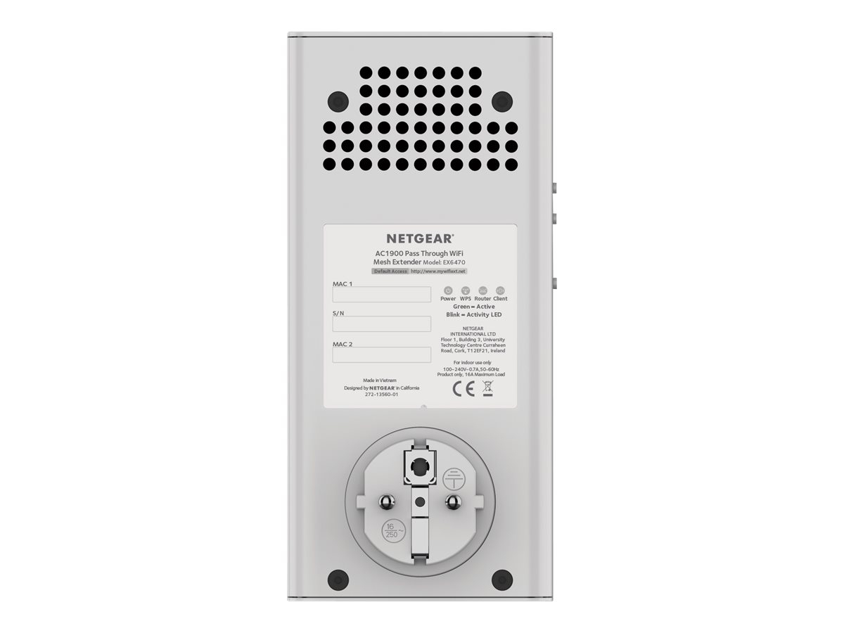 Le Répéteur WiFi Mesh Dual Band améliore la couverture WiFi de votre réseau existant pour créer un WiFi Mesh puissant qui permet de diffuser des vitesses rapides allant jusqu'à 1.9 Gbit/s. Il fonctionne avec n'importe quel box/ routeur et est idéal pour le streaming HD et les jeux en ligne. Le répéteur WiFi Mesh EX6470 comprend une prise filtrée intégrée pour brancher un appareil de votre choix.