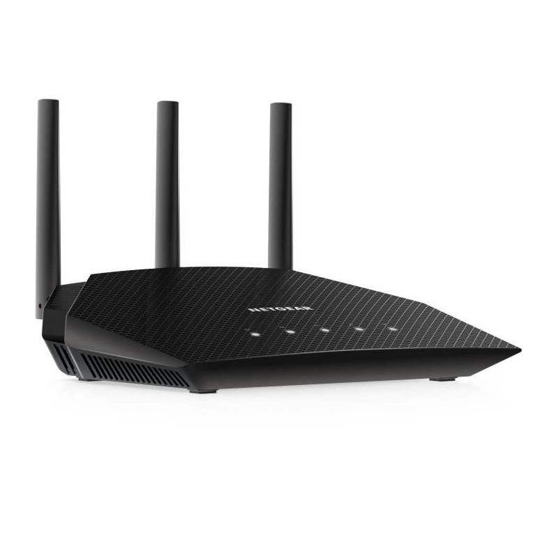 NETGEAR Nighthawk 4-Stream AX1800 WiFi 6 Router (RAX10). Type de connexion WAN: RJ-45. Bande Wi-Fi: Bi-bande (2,4 GHz / 5 GHz), Norme Wi-Fi: Wi-Fi 6 (802.11ax), Débit de transfert des données WLAN (max): 1800 Mbit/s. Type d'interface LAN Ethernet: Gigabit Ethernet, LAN Ethernet : taux de transfert des données: 10,100,1000 Mbit/s, Standards réseau: IEEE 802.11a, IEEE 802.11ac, IEEE 802.11ax, IEEE 802.11b, IEEE 802.11g, IEEE 802.11i, IEEE 802.11n. Algorithme de sécurité soutenu: 128-bit AES, WPA3. Type de produit: Routeur, Couleur du produit: Noir