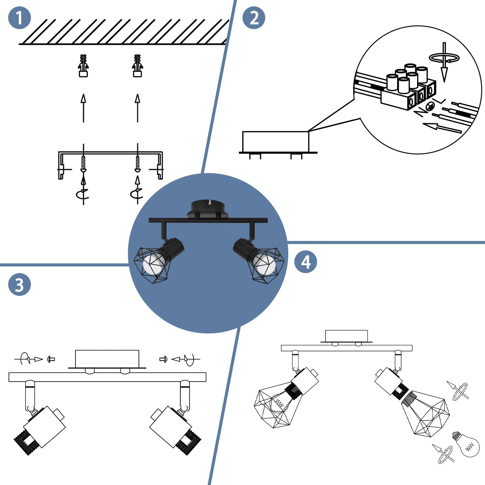 【Design élégant et matériau de haute qualité】 Le spot de plafond à 2 ampoules est conçu dans un style industriel rétro avec des spots muraux créatifs en fil noir, cette applique murale à l'intérieur est robuste et durable, simple et classique, sûre et fiable, ces spots de plafond noirs ne change pas de couleur facilement, la couleur de la surface reste Dure longtemps et peut être intégrée dans n'importe quel espace de vie, parfait pour une utilisation en intérieur.