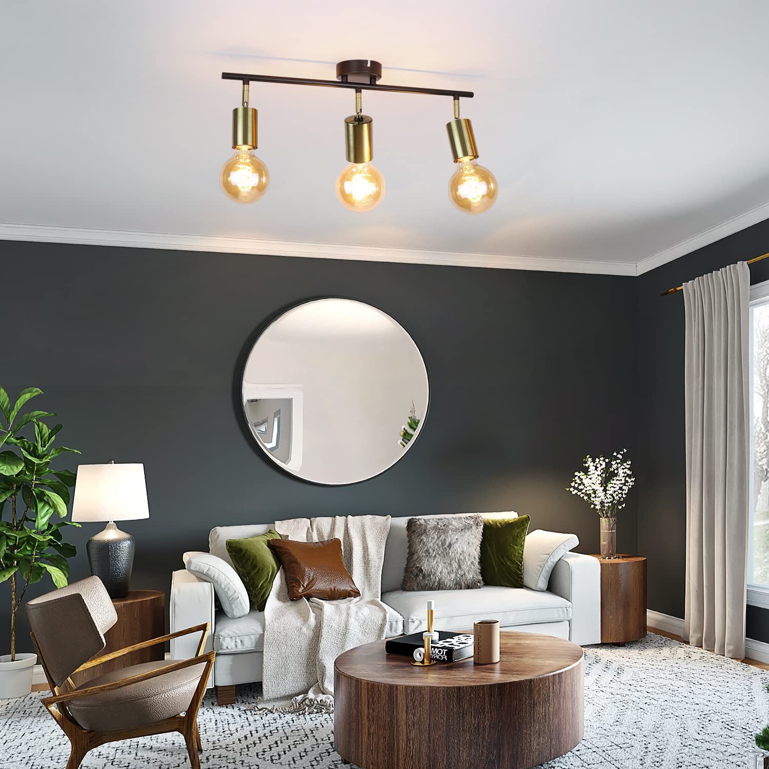 ⭐ Flexible et pratique : ce plafonnier à 3 spots peut être librement pivoté de haut en bas, de gauche à droite. Et puis ces spots de plafond au style DIY unique peuvent dégager la zone d'éclairage souhaitée. Le cadre en métal doré s'harmonise avec la verrière noire du plafond. Si vous aimez les couleurs surannées, les ampoules Edison sont particulièrement efficaces. (Sans ampoule)