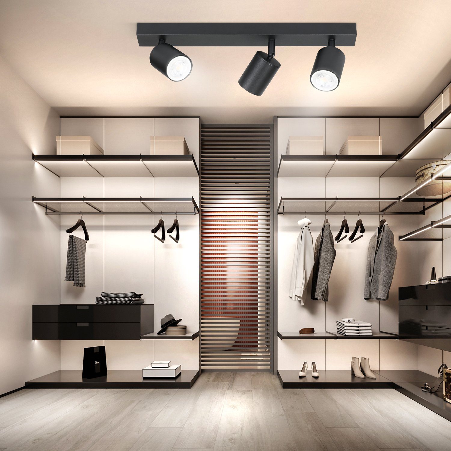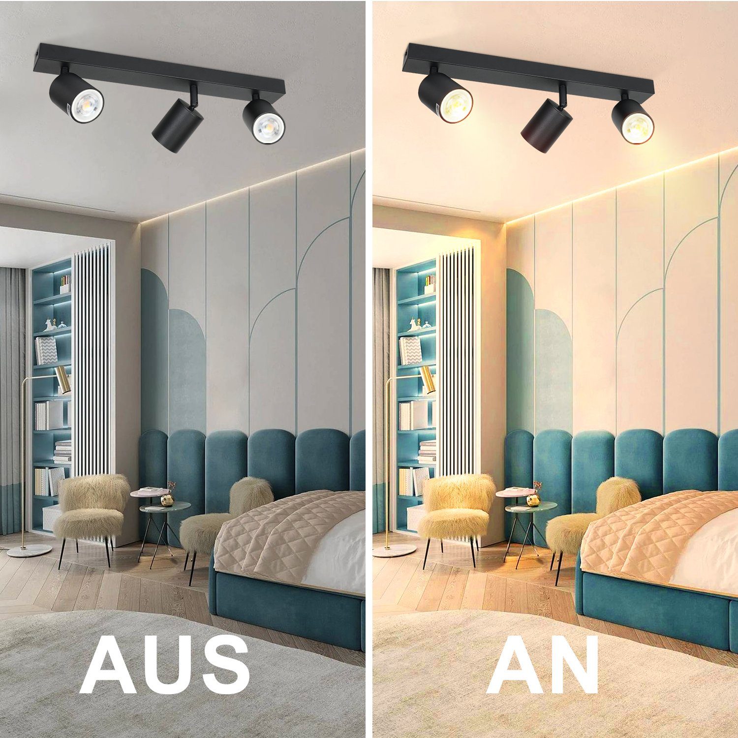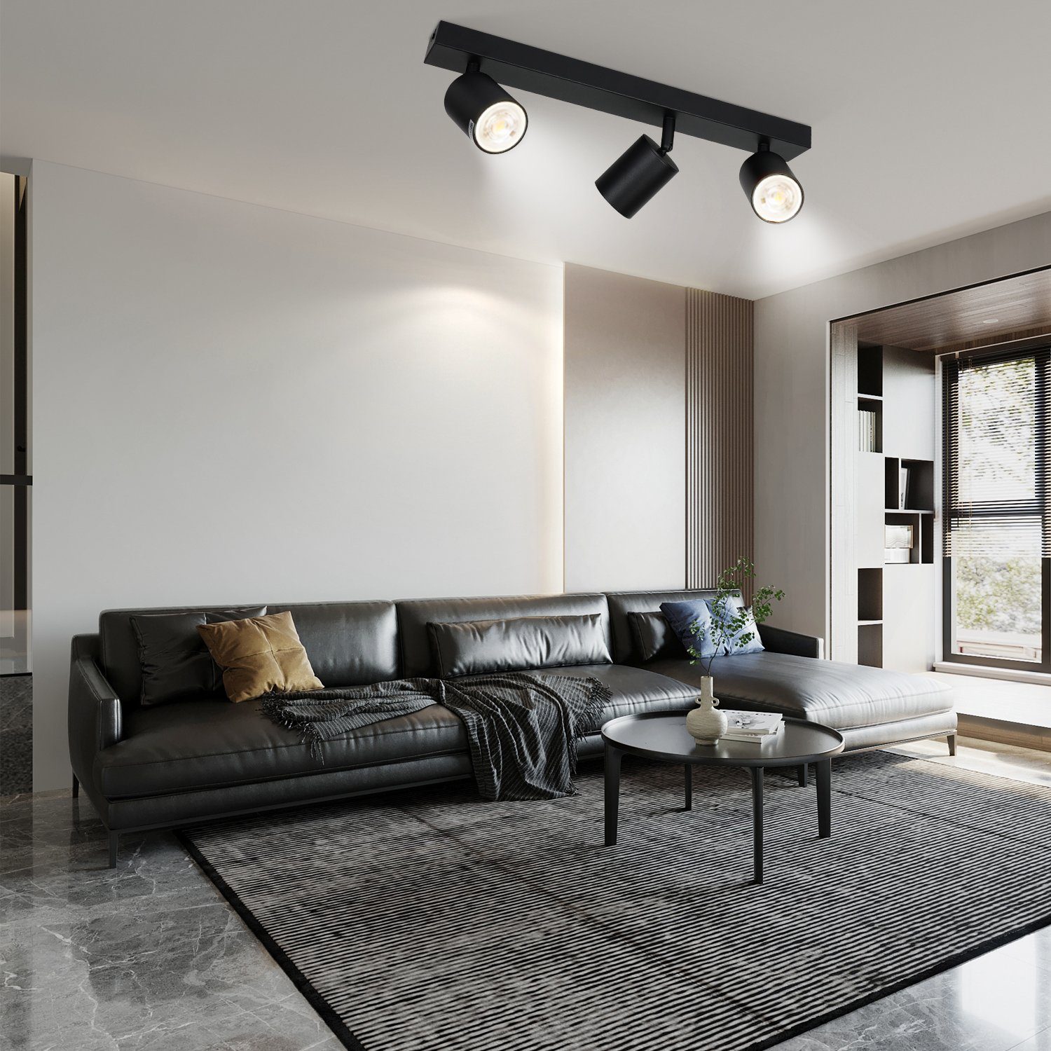 NETTLIFE 3 Spots Max.25w LED Noir GU10 Plafonnier 350° Pivotant Lampe de Couloir Moderne Applique Murale