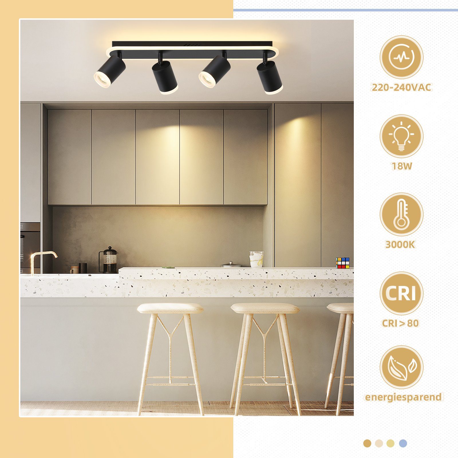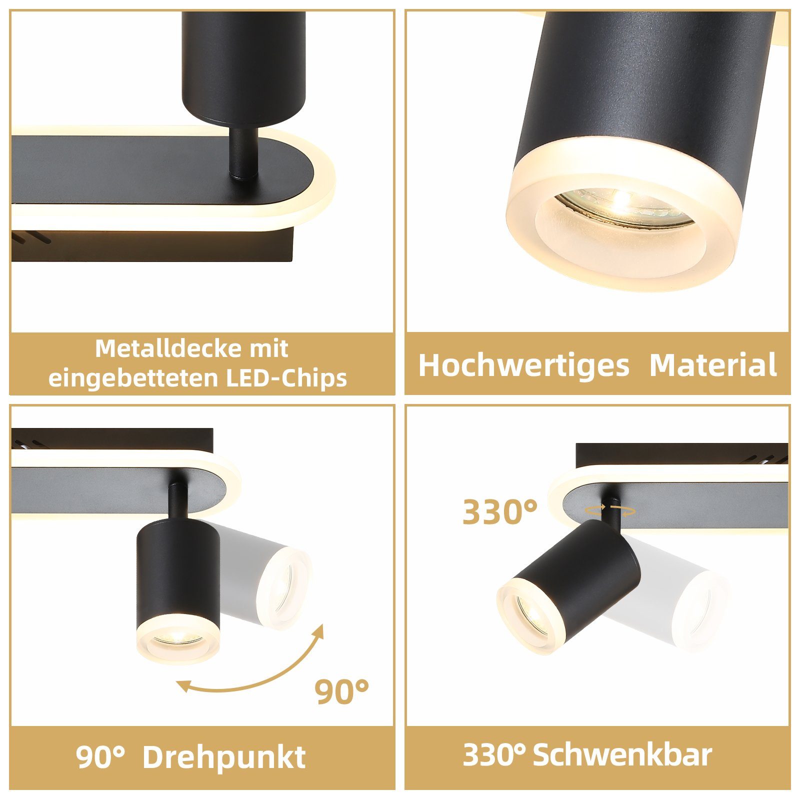 Libellé NETTLIFE 4 spot de plafond LED GU10 métal noir orientable 330° spot moderne blanc chaud pour chambre couloir salle à manger cuisine salon
