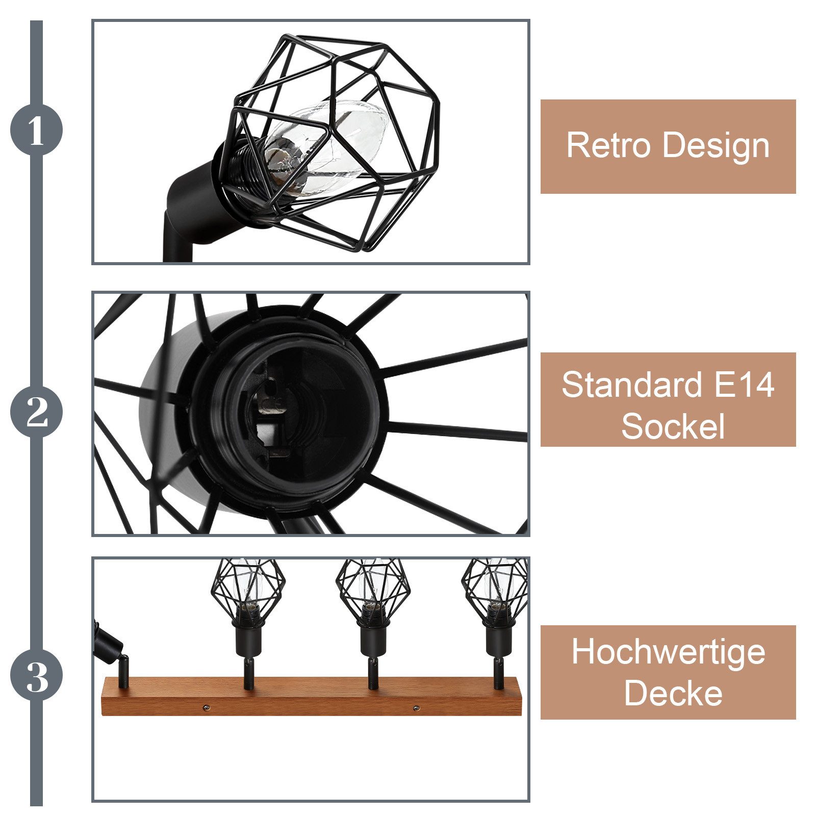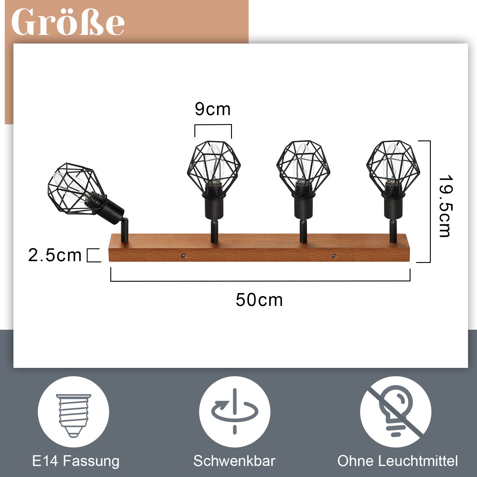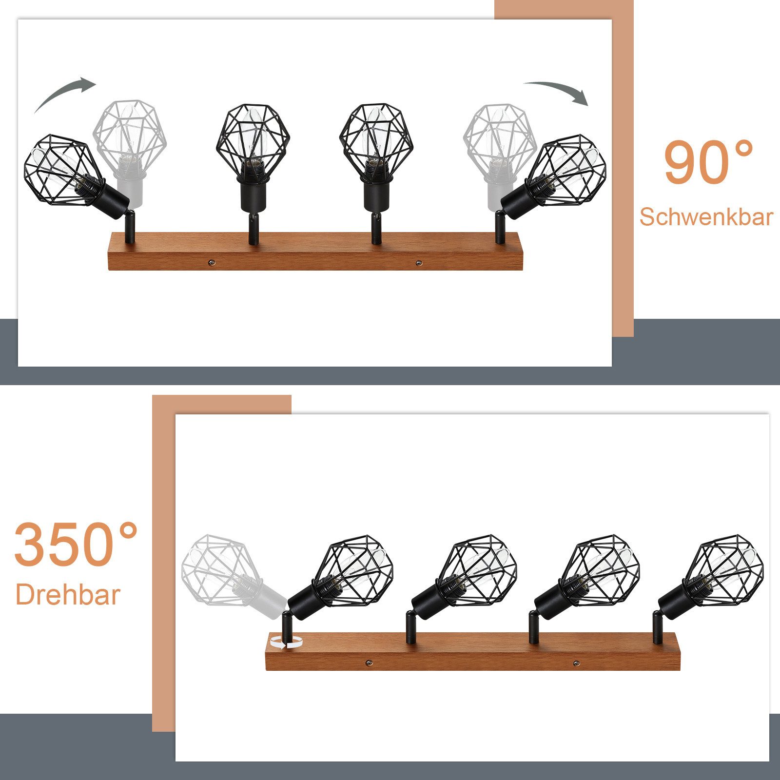 | Libellé | NETTLIFE 4 spots de plafond noir E14 bois vintage métal, plafonnier orientable à 350° pour intérieur chambre salon salle à manger cuisine max 25W |