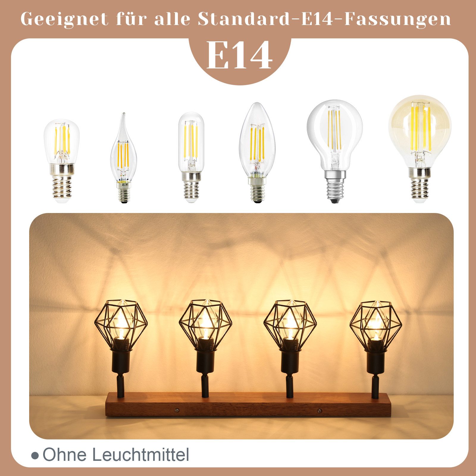 NETTLIFE 4 spots de plafond noir E14 bois vintage métal, plafonnier orientable à 350° pour intérieur cham