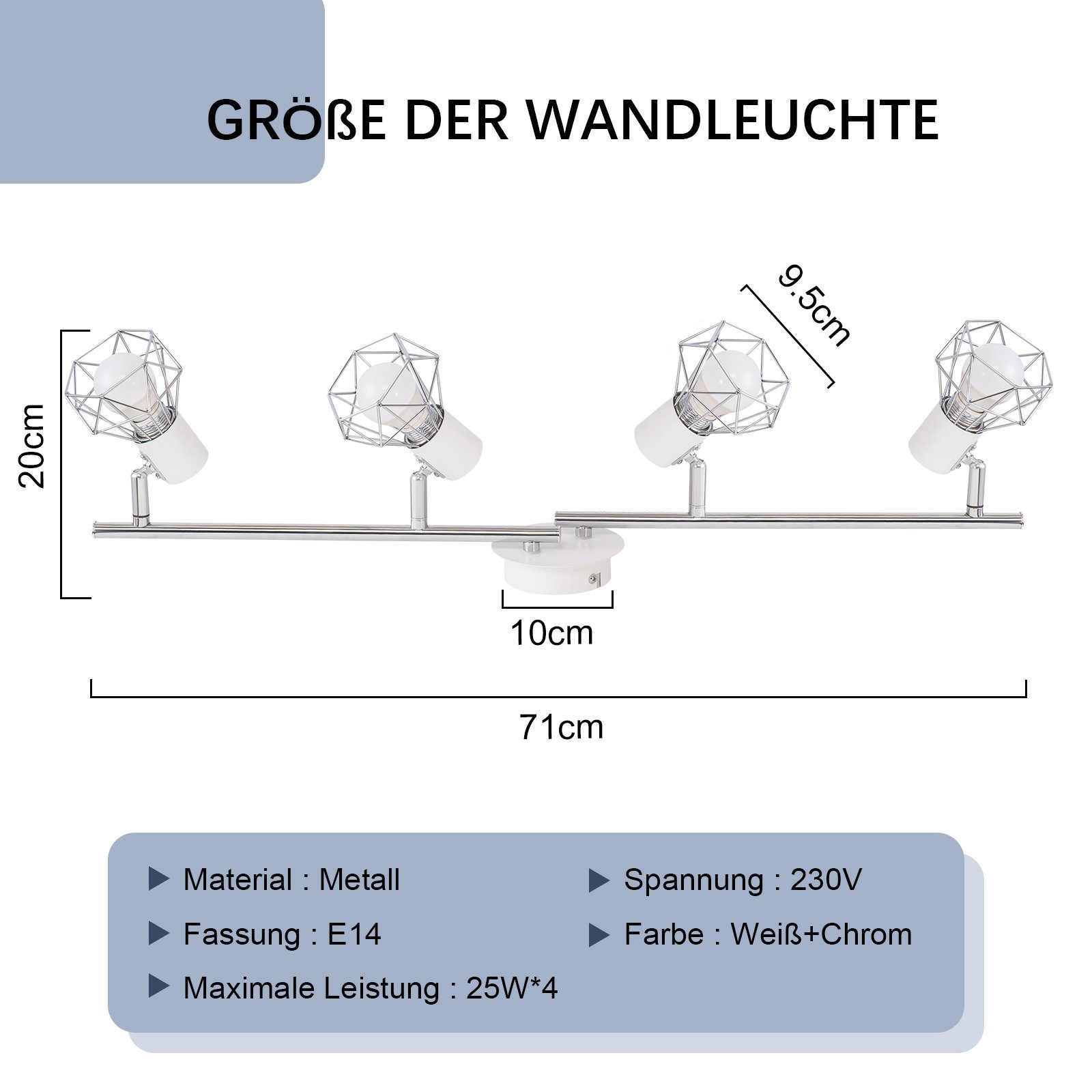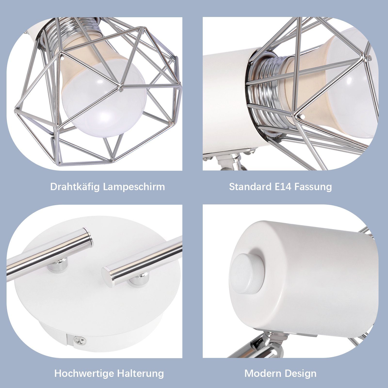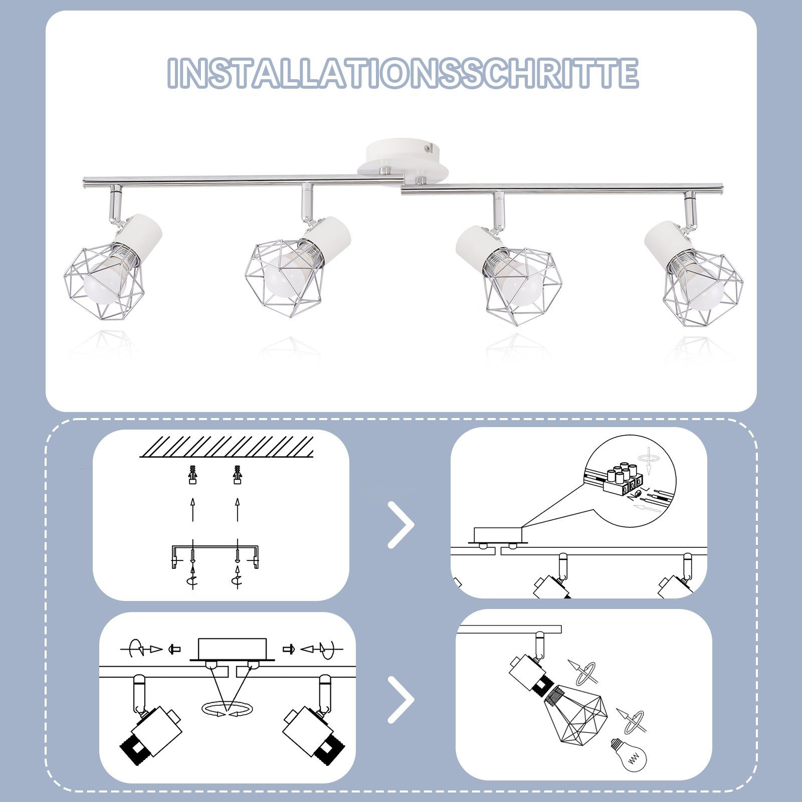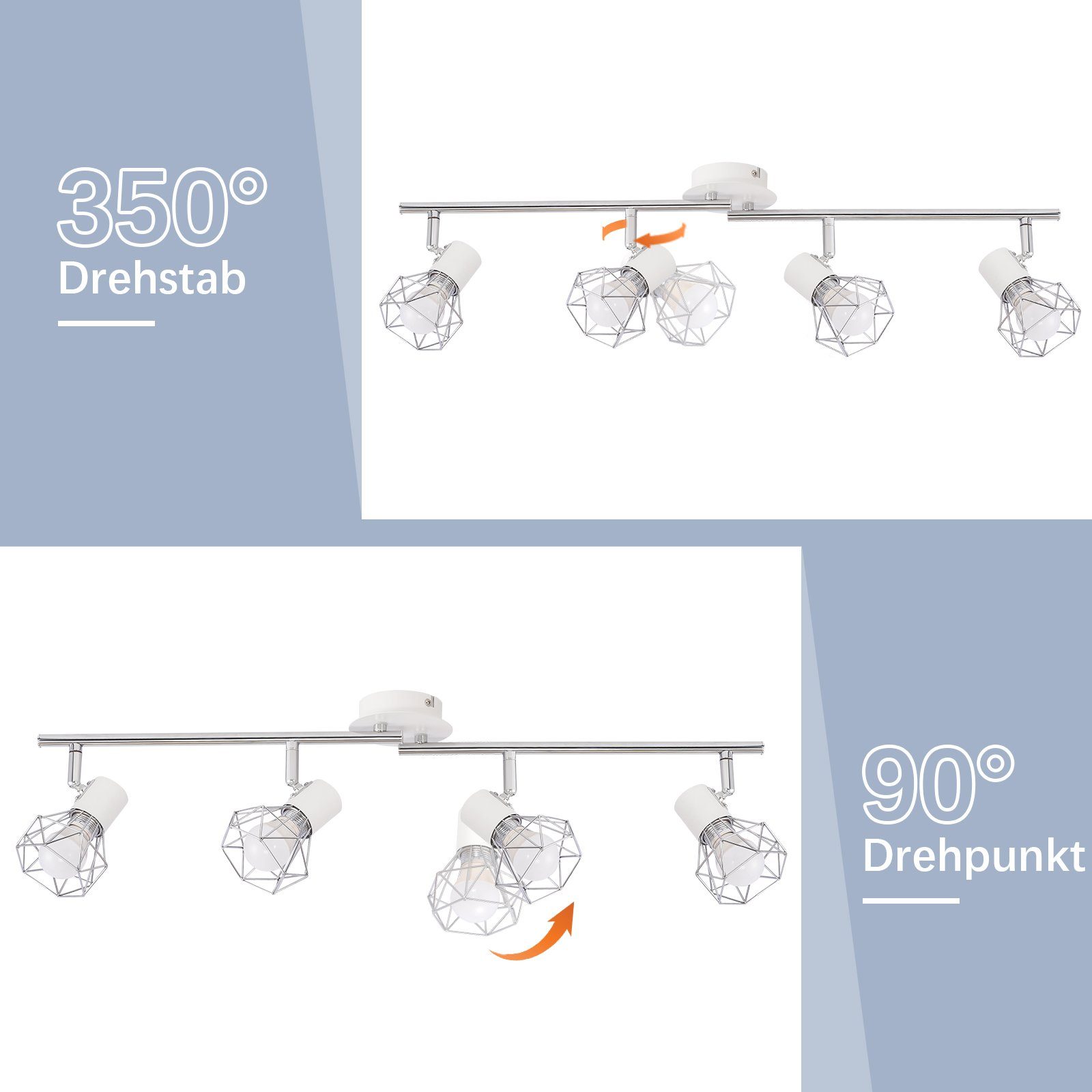【Supports de lampe standard】 Ce spot de plafond à 4 ampoules dispose de quatre douilles E14 standard pour des lampes de 25 watts maximum. Ce plafonnier Spots convient à toutes les lampes à économie d'énergie E14, ampoules et lampes LED. Attention : les ampoules ne sont pas incluses. Vous pouvez choisir différentes couleurs (blanc chaud/blanc froid) en fonction de votre couleur de lumière préférée.