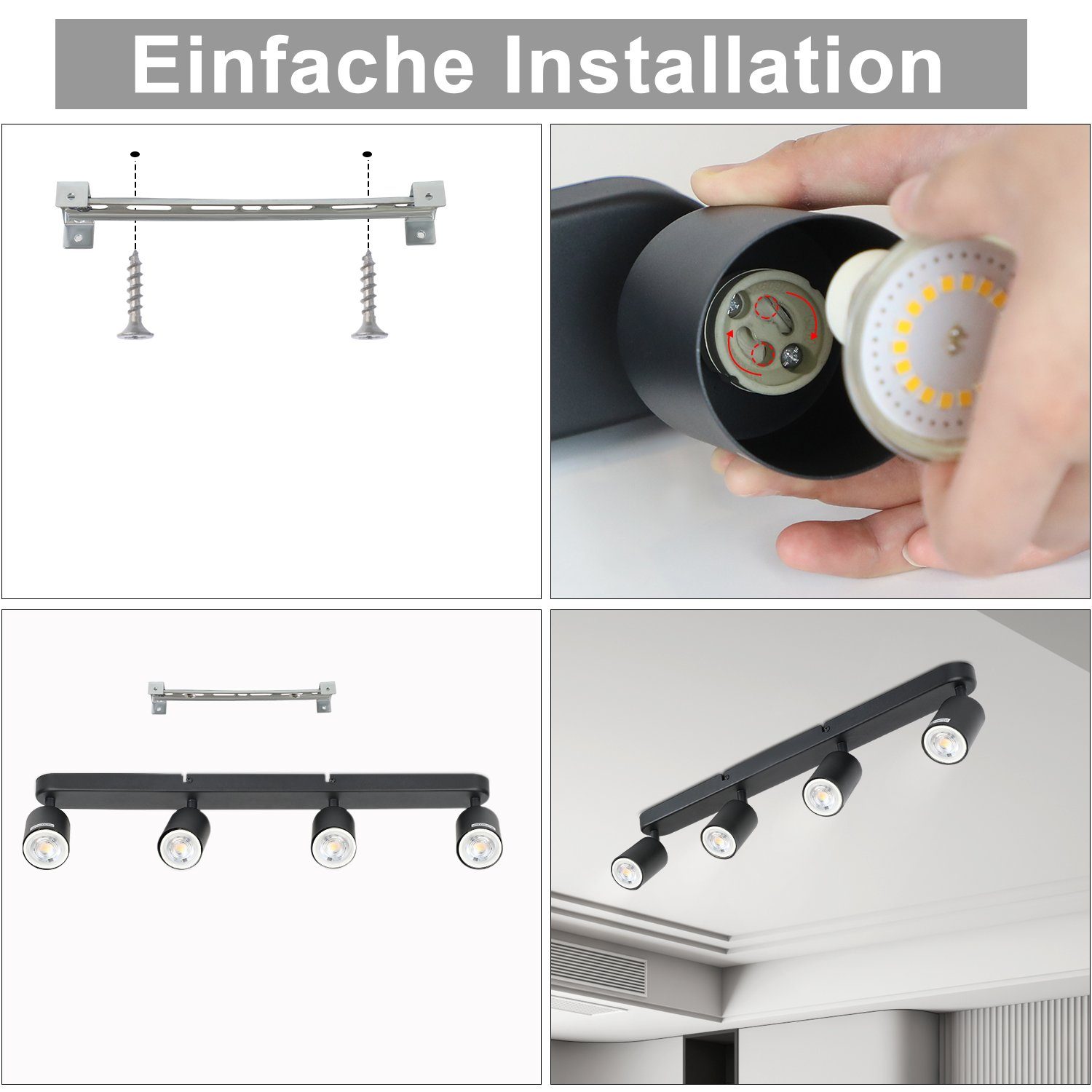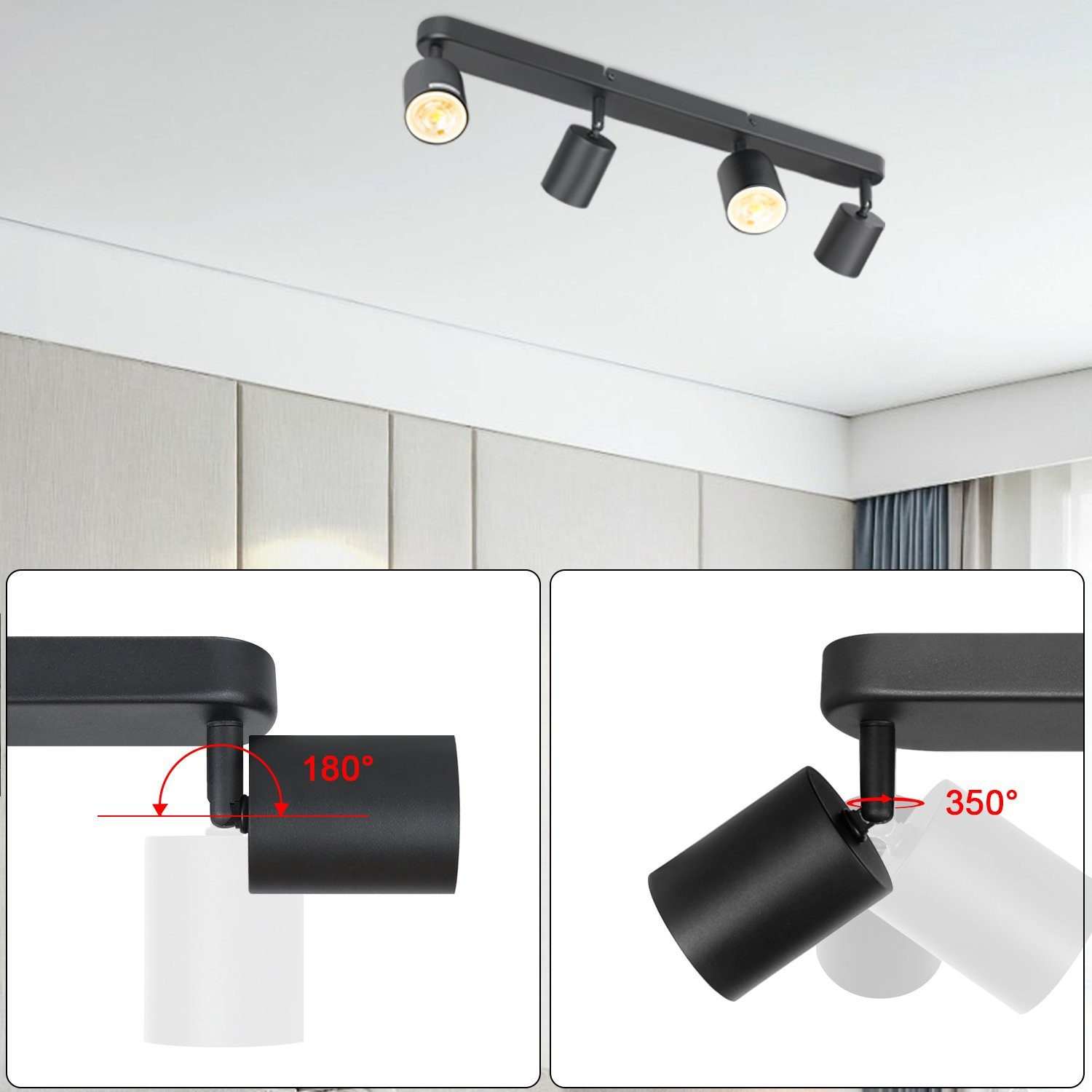 NETTLIFE 4 Spots GU10 Max.25w Plafonnier LED Noir Salon Spot Orientable à 350° pour Couloir Chambre Cuisi