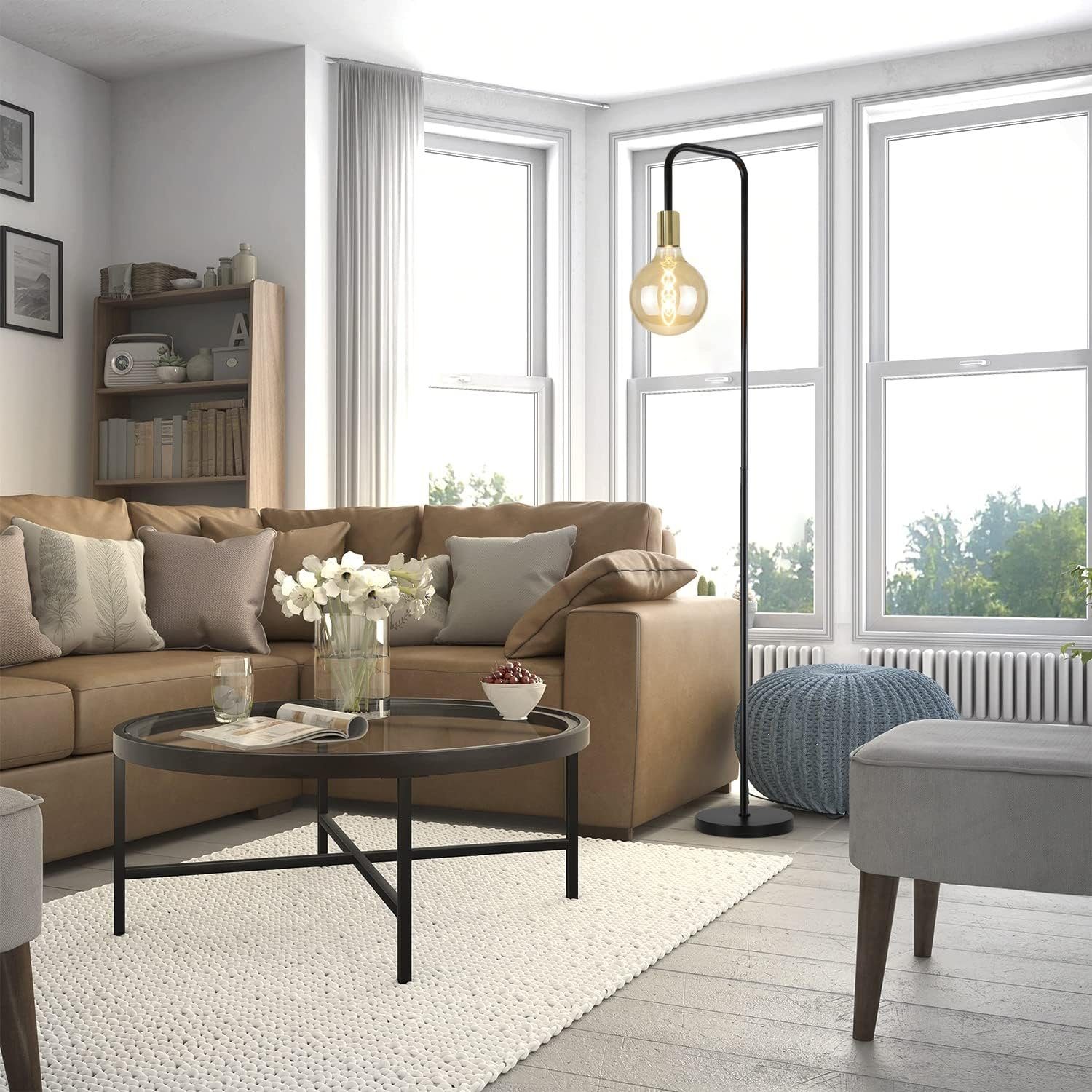 NETTLIFE Lampadaire Salon Vintage Lampadaire noir or avec interrupteur à pied Métal industriel Lampadaire