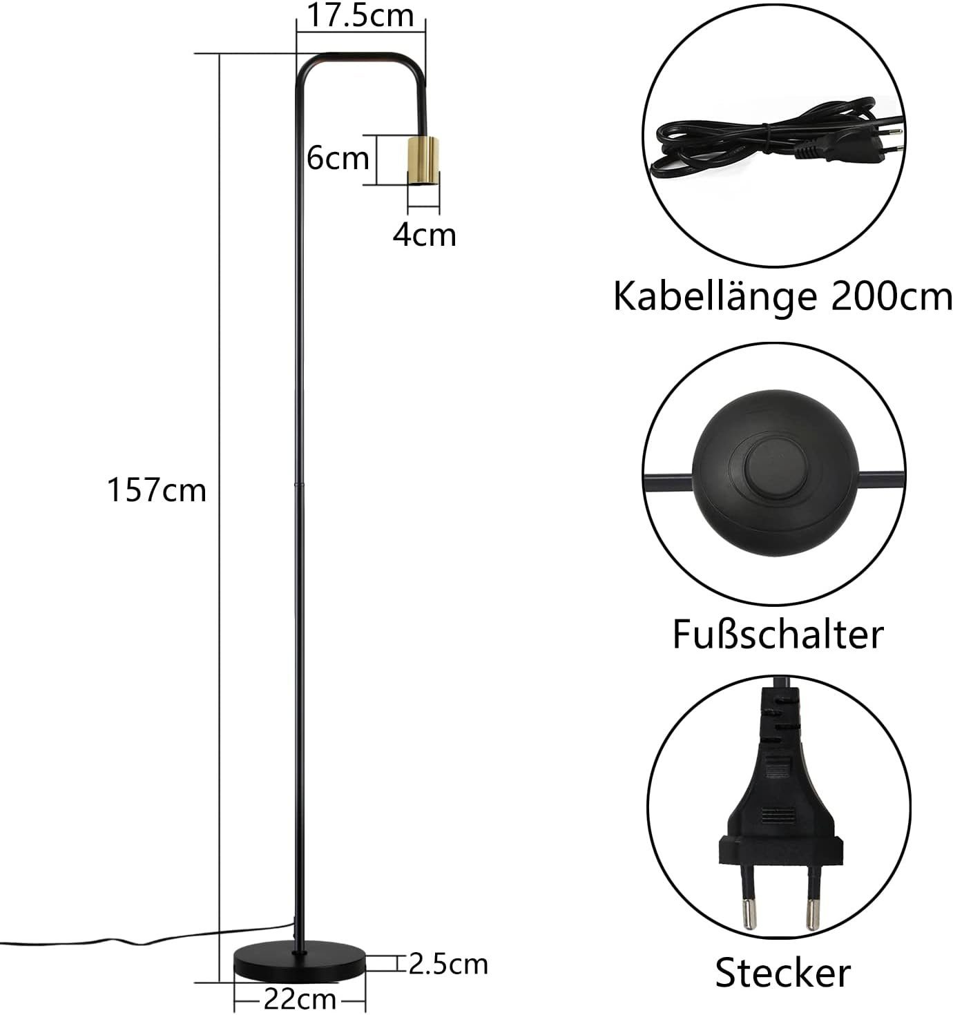 Style : Ce lampadaire E27 combine une surface rétro en métal doré et noir et est équipé d'un interrupteur au pied pratique. Il s'accorde parfaitement avec les styles moderne, industriel, vintage, rétro et maison de campagne.