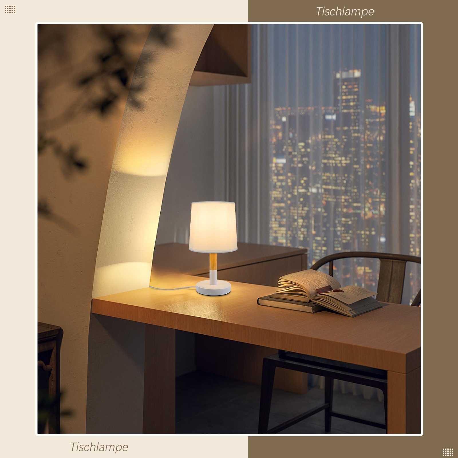 | Libellé | NETTLIFE Lampe de chevet Set de 2 lampes de table Salon - en bois E27 Douille Bedside Lamp Chambre à coucher Blanc |