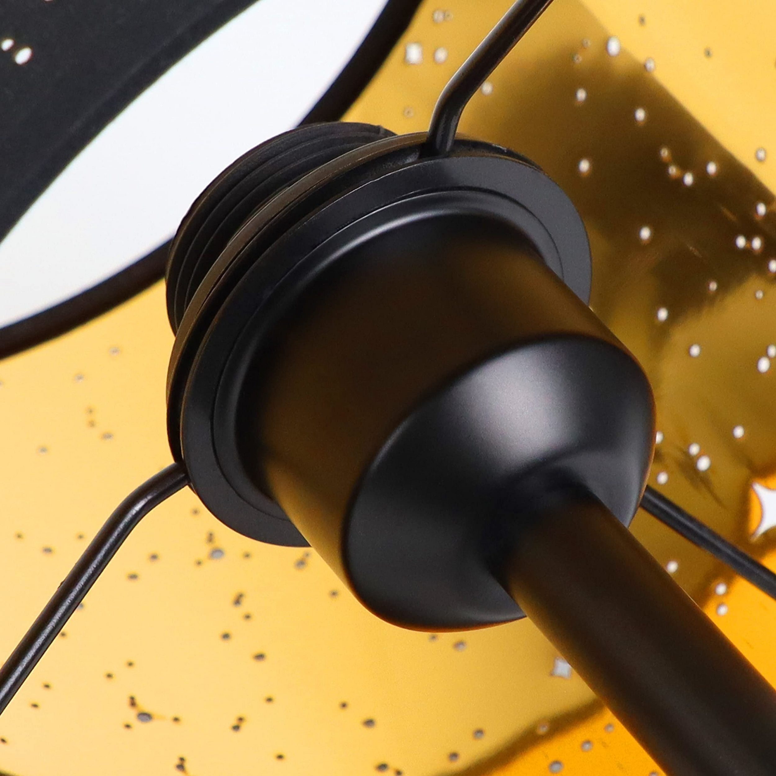 Sternenhimmel Design: Der Schwarze und Gold Leuchtenschirm aus Stoff ist via Lasercut-Technik mit zahlreichen kleinen Lochpunkten versehen worden, die mitunter an einen Sternenhimmel erinnert.Wenn das Licht durch den Lampenschirm dringt, entsteht eine Atmosphäre, die wie ein funkelnder Sternenhimmel aussieht. Das macht es zu einem sehr passenden Weihnachtsgeschenk.