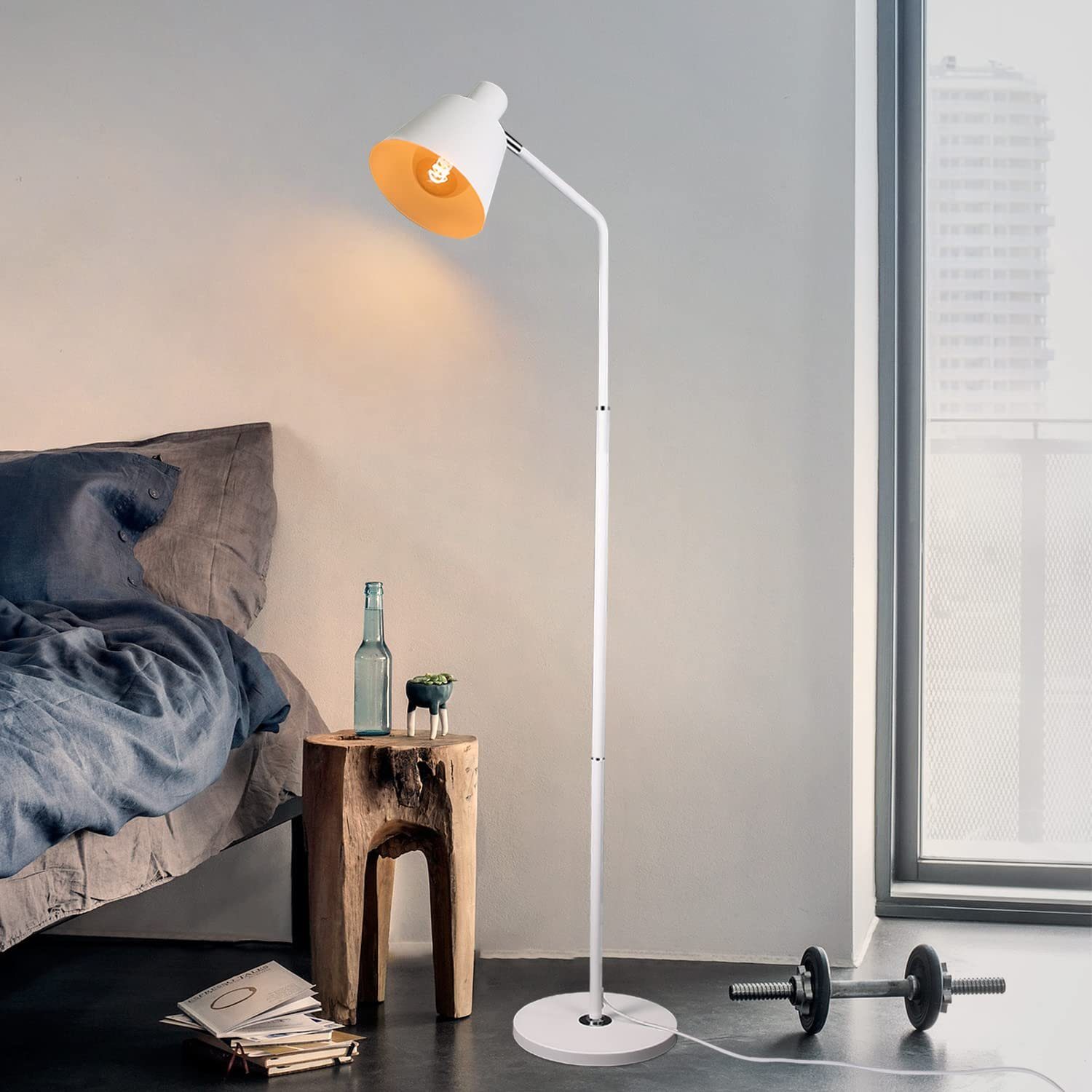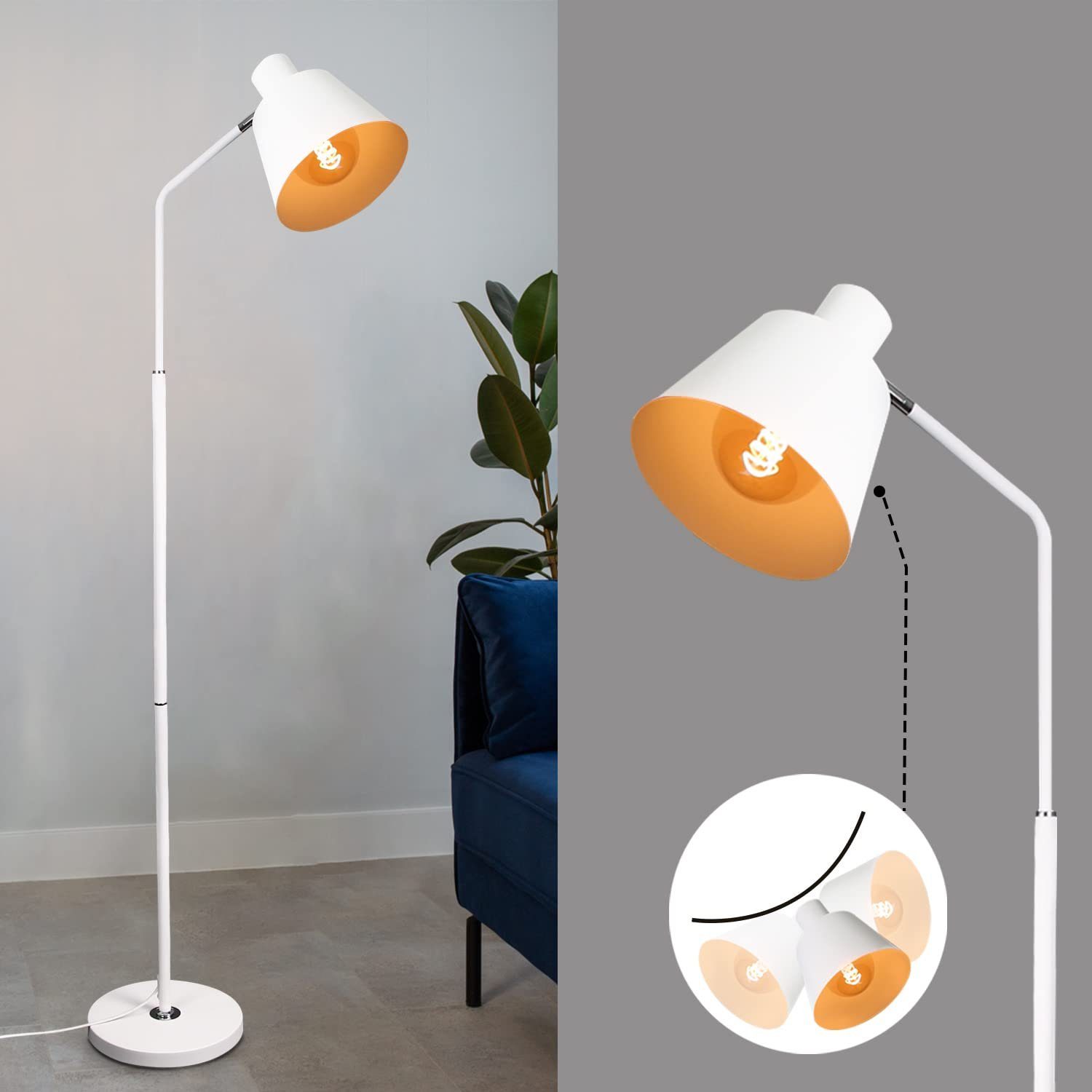 | Libellé | NETTLIFE Lampe sur pied pour salon, lampe debout vintage - 166 cm, design rétro, lampe sur pied blanche en métal avec douille E27, maximum 40 W |