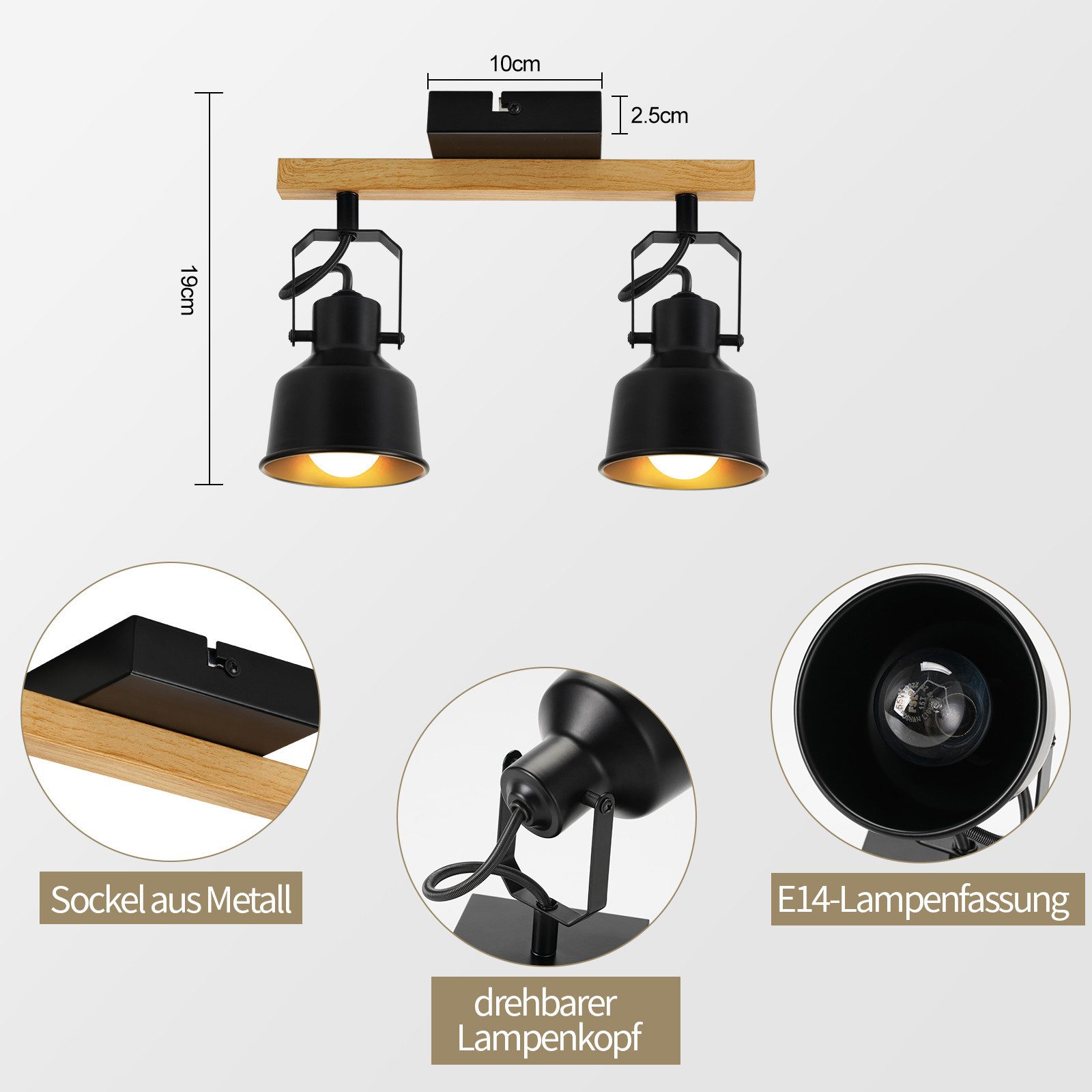 | Libellé | NETTLIFE Plafonnier 2 Flammes Orientable à 350° Vintage Douille E14 de conception de haute qualité en bois veiné |