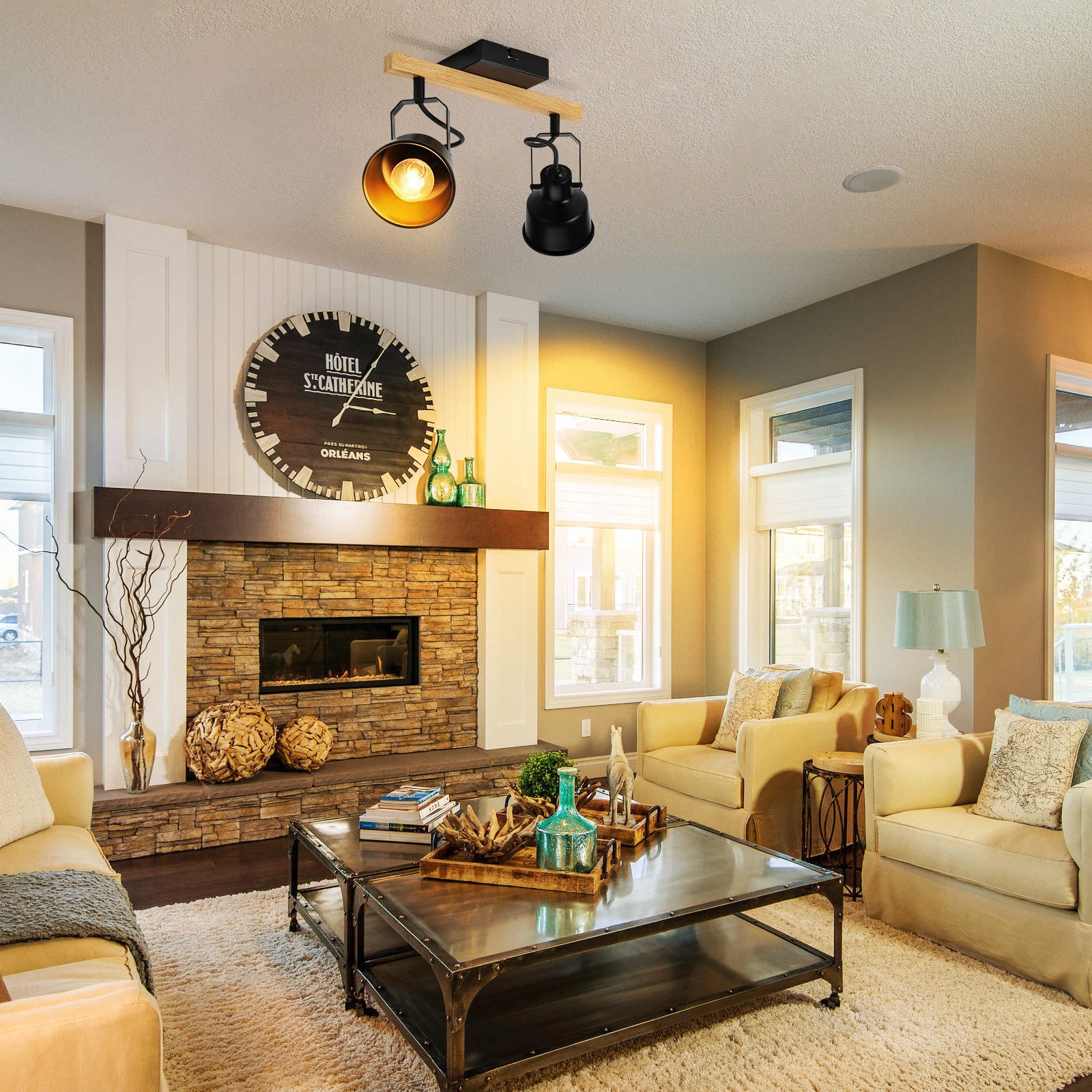 NETTLIFE Plafonnier 2 Flammes Orientable à 350° Vintage Douille E14 de conception de haute qualité en boi