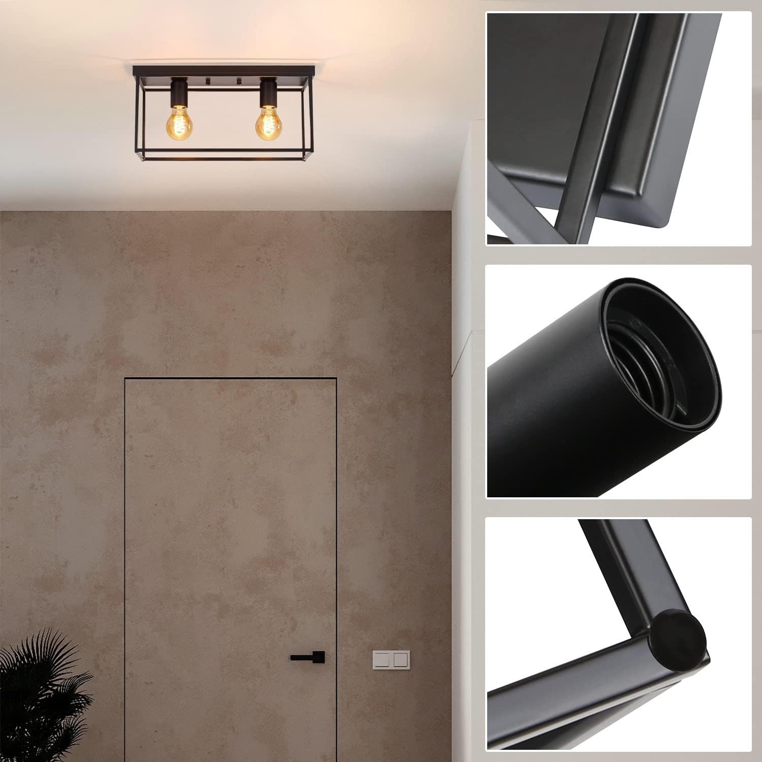 | Libellé | NETTLIFE Plafonnier 2 spots E27 25W rétro - lampe industrielle noire pour salon vintage en métal avec 2 ampoules max pour cuisine |