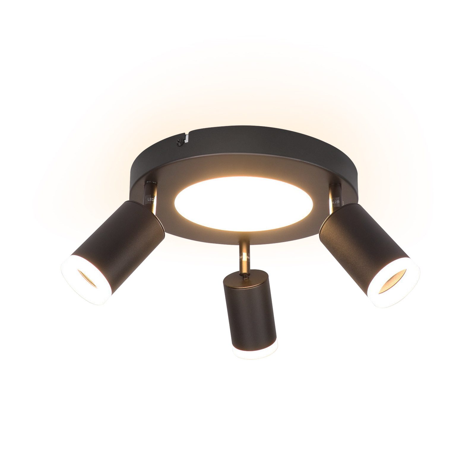 NETTLIFE Plafonnier 3 ampoules GU10 20W chambre 3000k lampe cuisine noire orientable 350 orientable en mé
