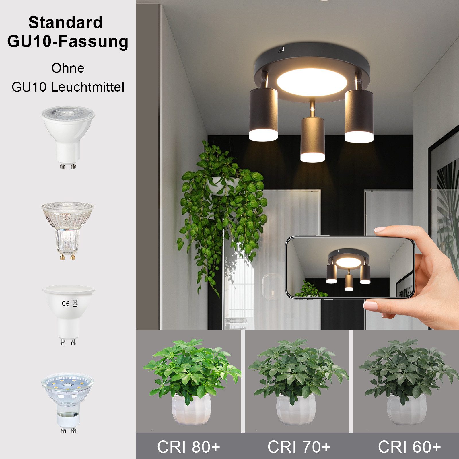 [Design et personnalisation] Avec son design moderne et simple, notre lampe de salle à manger s'adapte à tous les styles de vie. Le spot est équipé sans ampoules, vous pouvez donc choisir librement entre différentes lampes GU10.