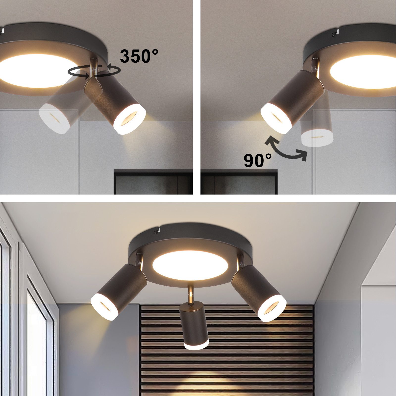 | Libellé | NETTLIFE Plafonnier 3 ampoules GU10 20W chambre 3000k lampe cuisine noire orientable 350 orientable en métal |