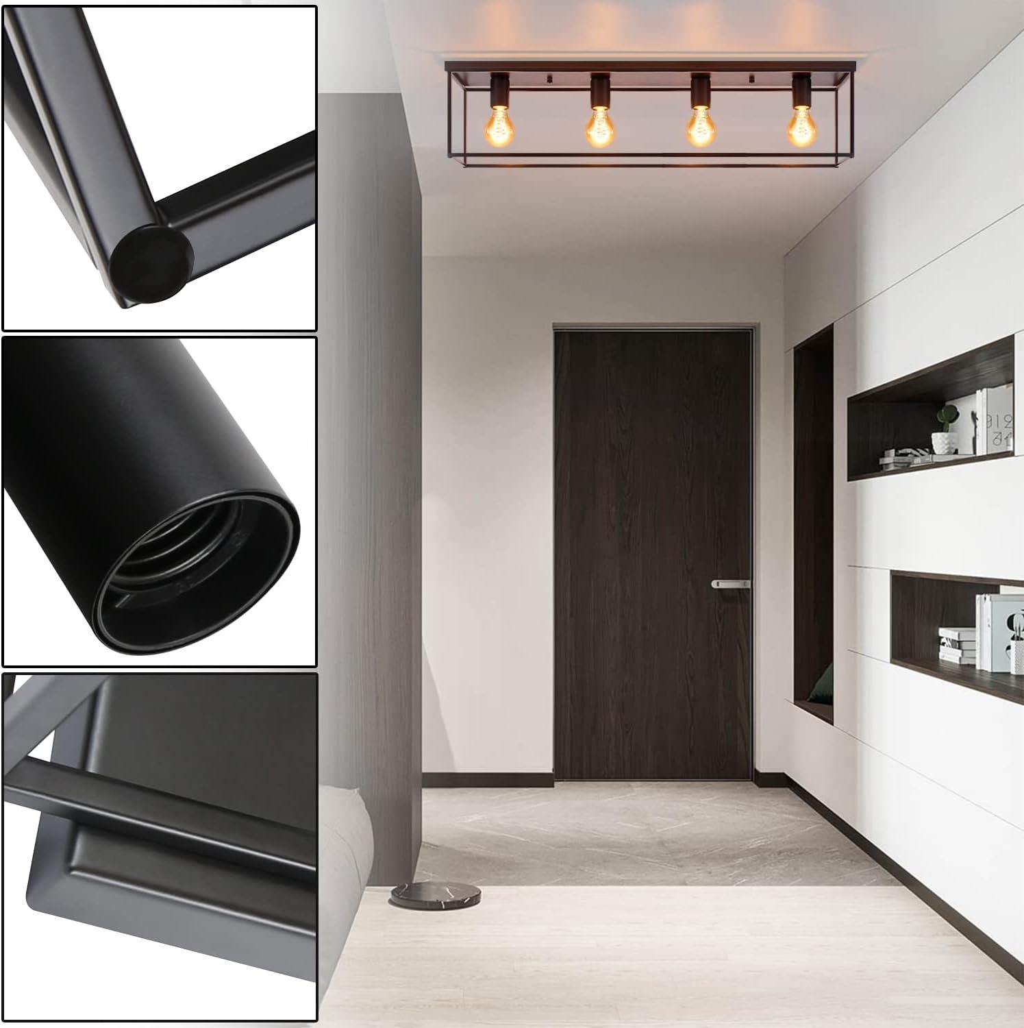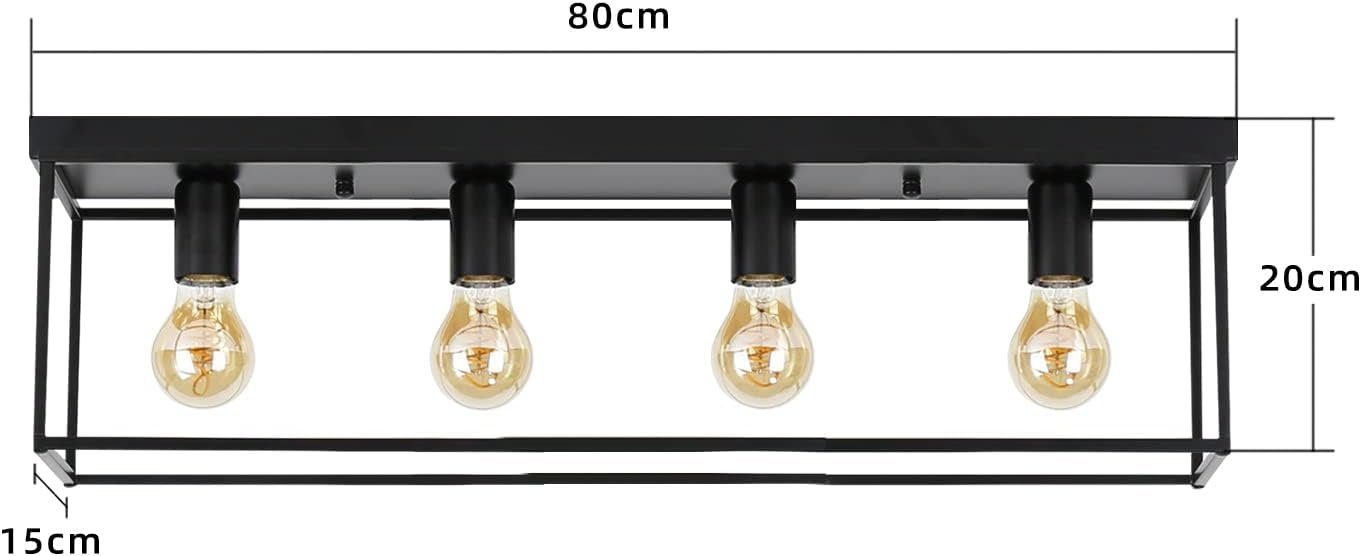 | Libellé | NETTLIFE Plafonnier 4 spots E27 vintage noir industriel pour chambre salon en métal rétro avec 4 ampoules pour cuisine couloir |