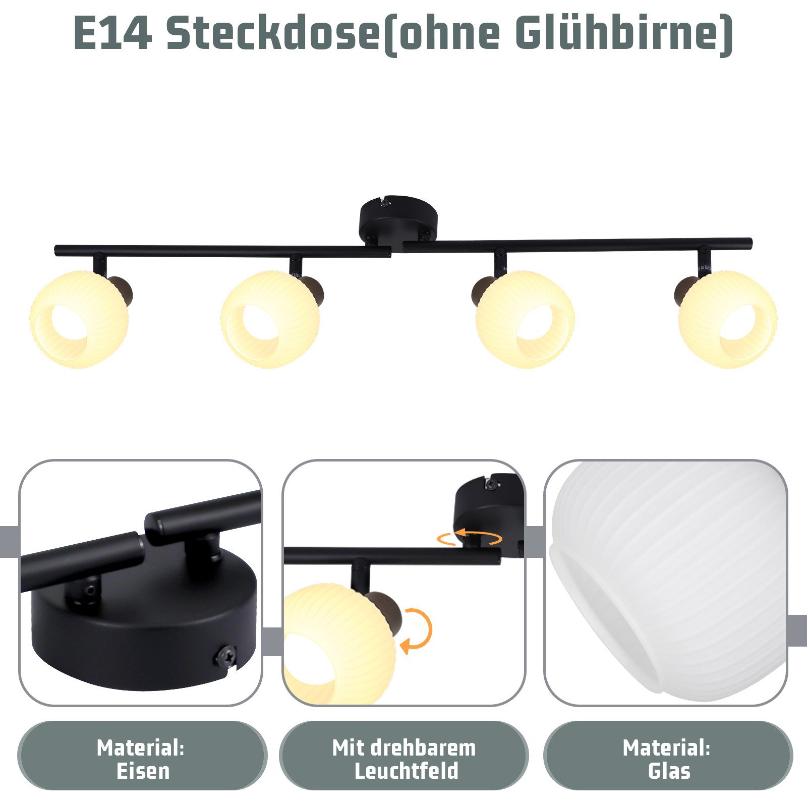 | Libellé | NETTLIFE Plafonnier blanc E14 plafonnier 4 ampoules intérieur abat-jour en verre spot orientable |