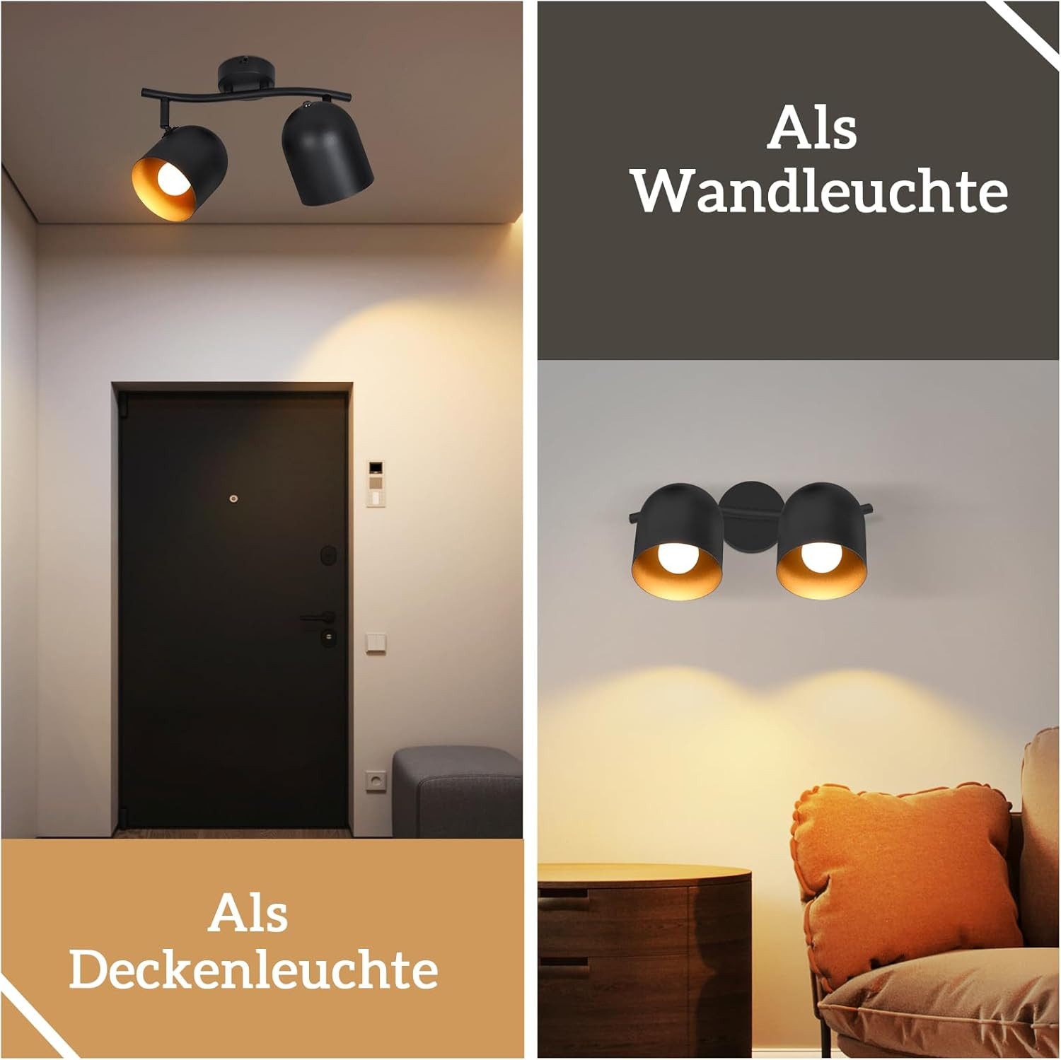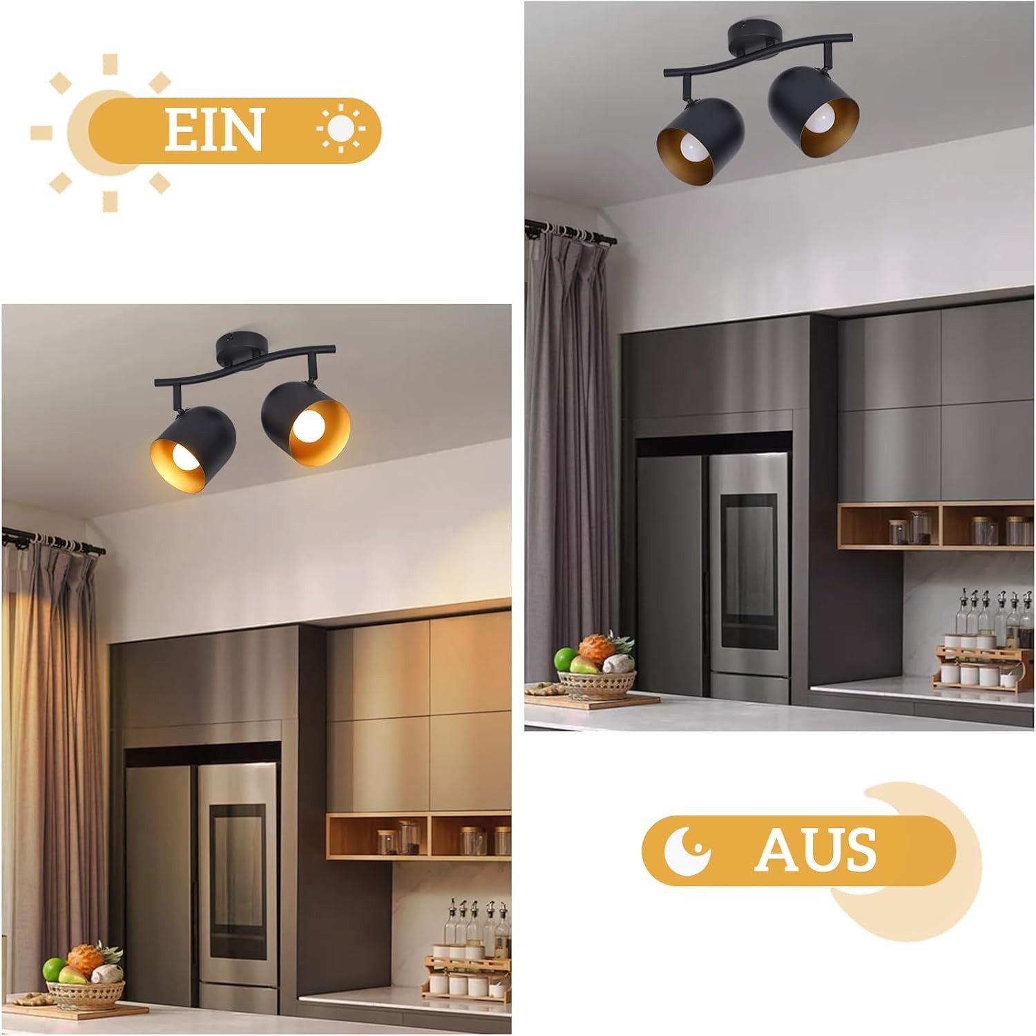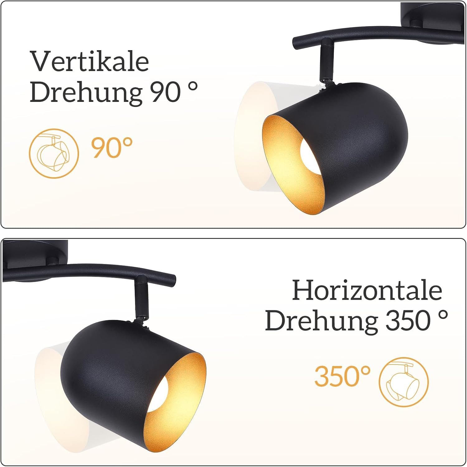 | Libellé | NETTLIFE Plafonnier E14 noir doré Plafonnier lampe de couloir industrielle vintage orientable sans ampoule orientable à 350° |