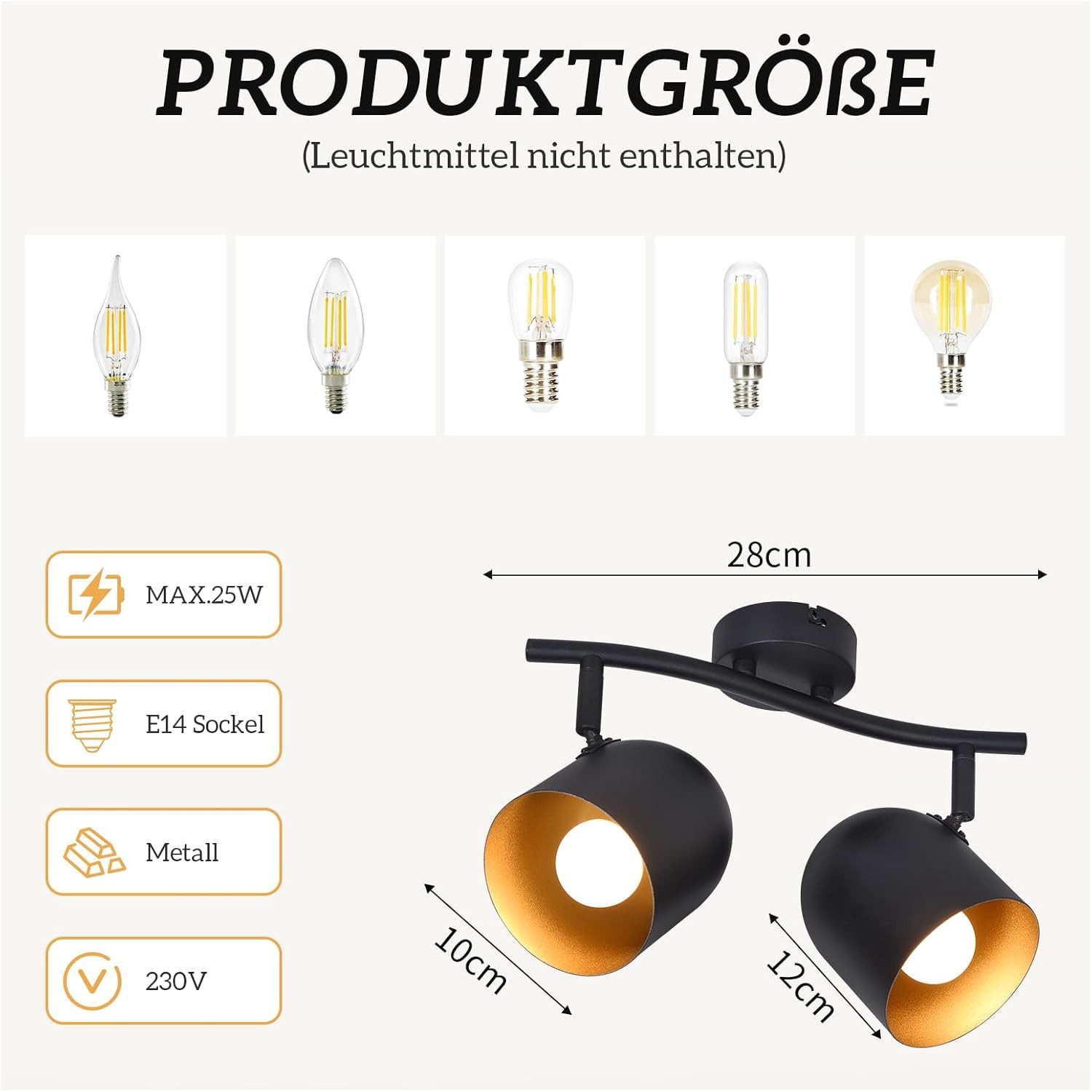 NETTLIFE Plafonnier E14 noir doré Plafonnier lampe de couloir industrielle vintage orientable sans ampoul
