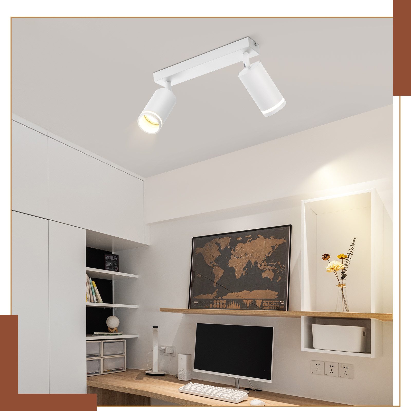 NETTLIFE Plafonnier LED 2 flamme - Blanc Plafonnier GU10 Spot pivotant Applique murale en bois Spot mural
