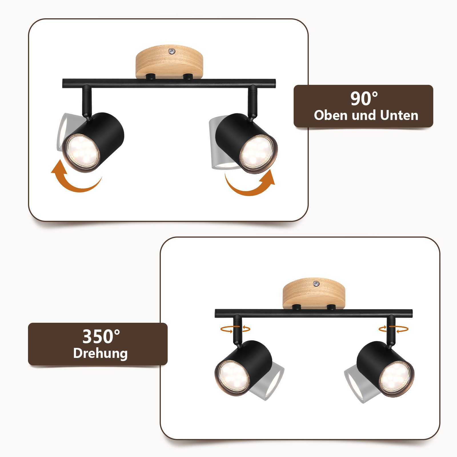 | Libellé | NETTLIFE Plafonnier LED 2 flamme - Noir Plafonnier GU10 Spot pivotant Applique murale en bois Spot mural pour salon chambre Sans ampoule |