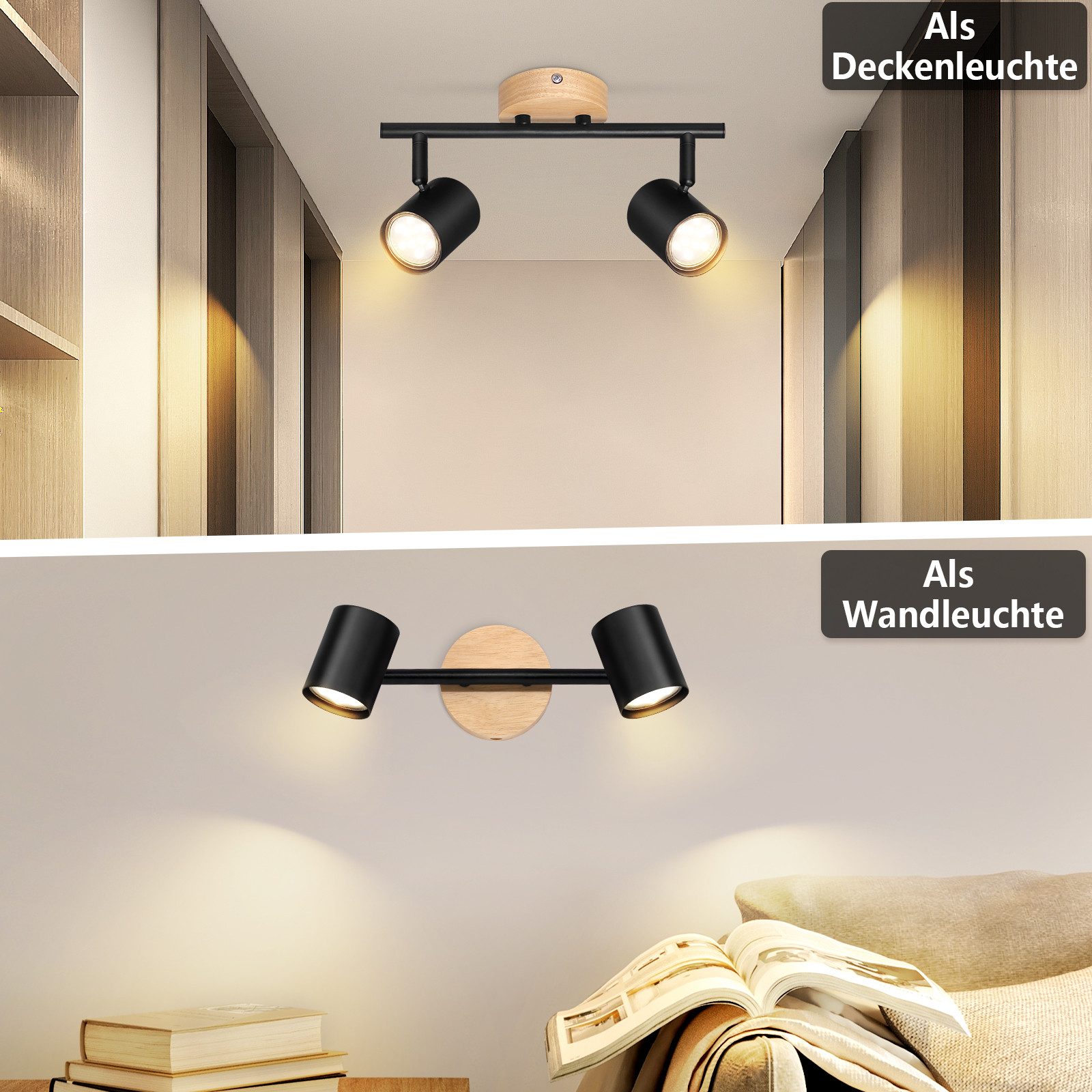 NETTLIFE Plafonnier LED 2 flamme - Noir Plafonnier GU10 Spot pivotant Applique murale en bois Spot mural
