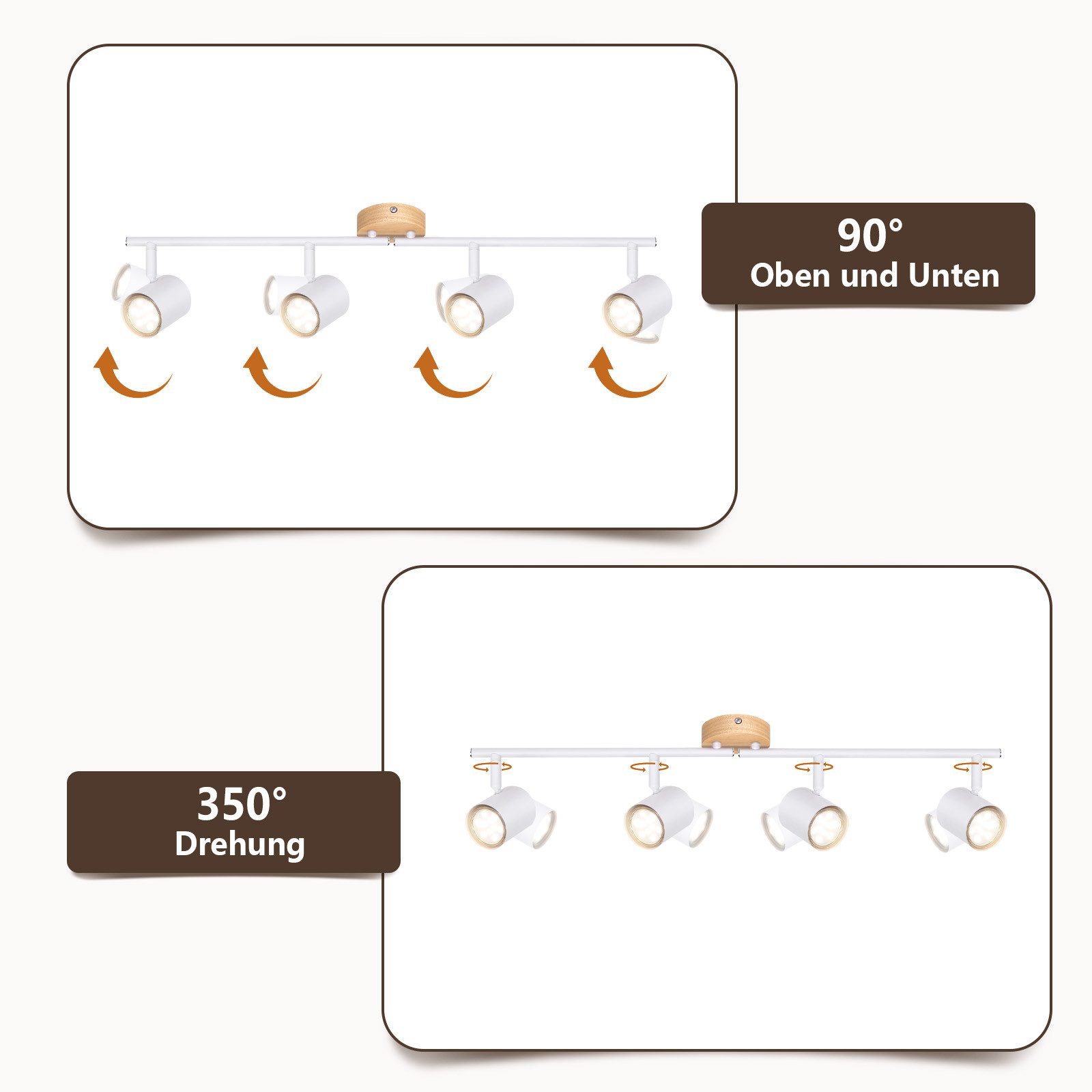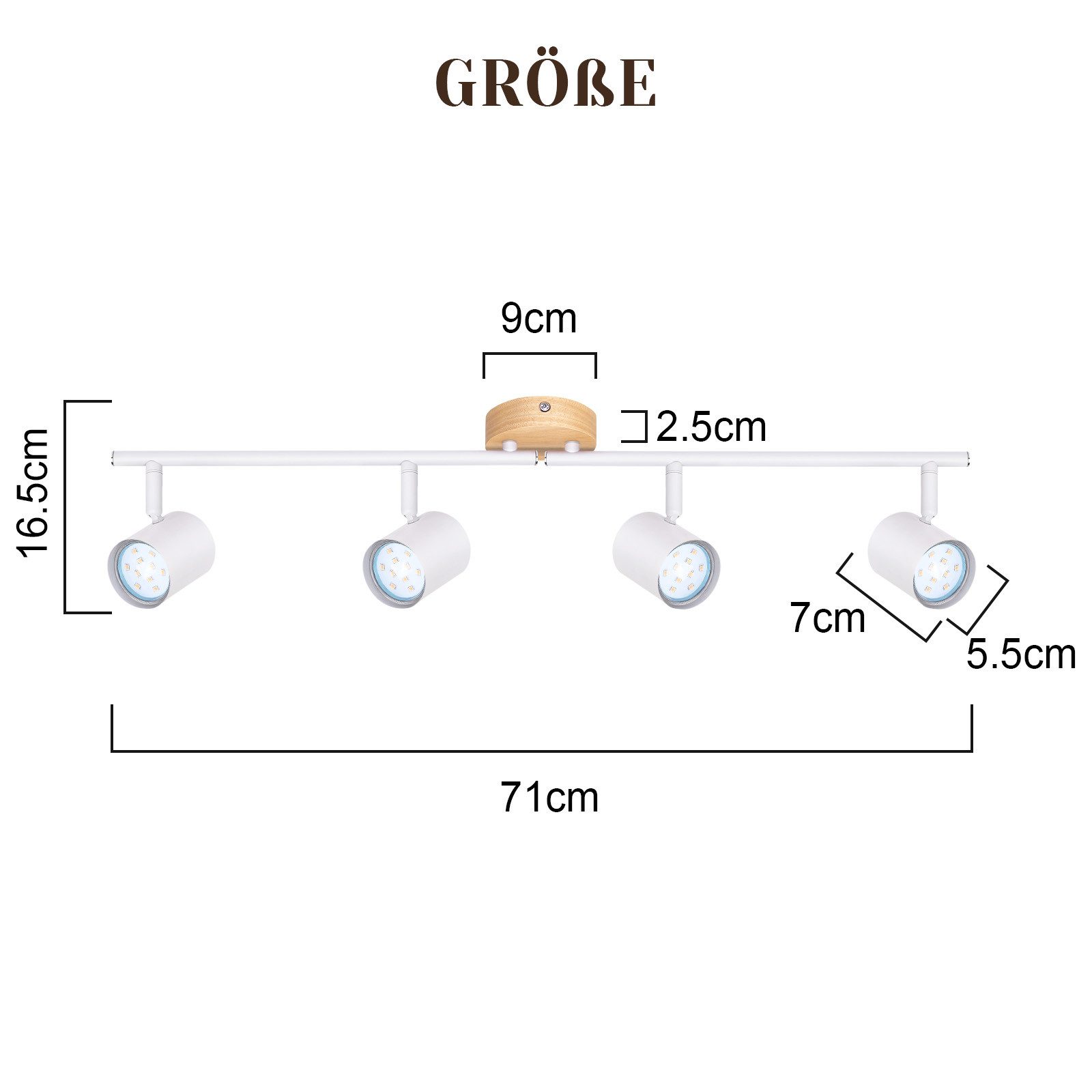 | Libellé | NETTLIFE Plafonnier LED 4 flamme - Blanc Plafonnier GU10 Spot pivotant Applique murale en bois Spot mural pour salon chambre Sans ampoule |