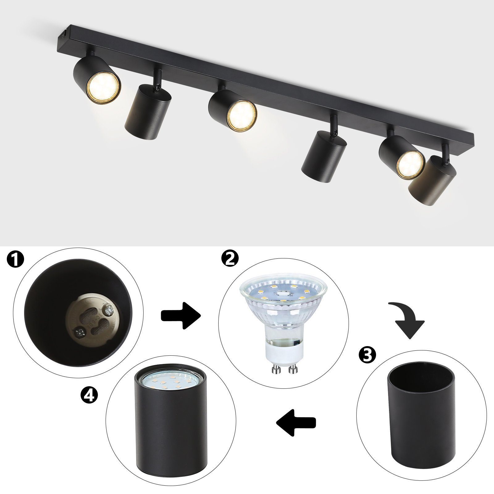 NETTLIFE Plafonnier LED Spot de Plafond Noir : Plafonnier GU10 Spots 6 Ampoules, Spots de Plafond Orienta