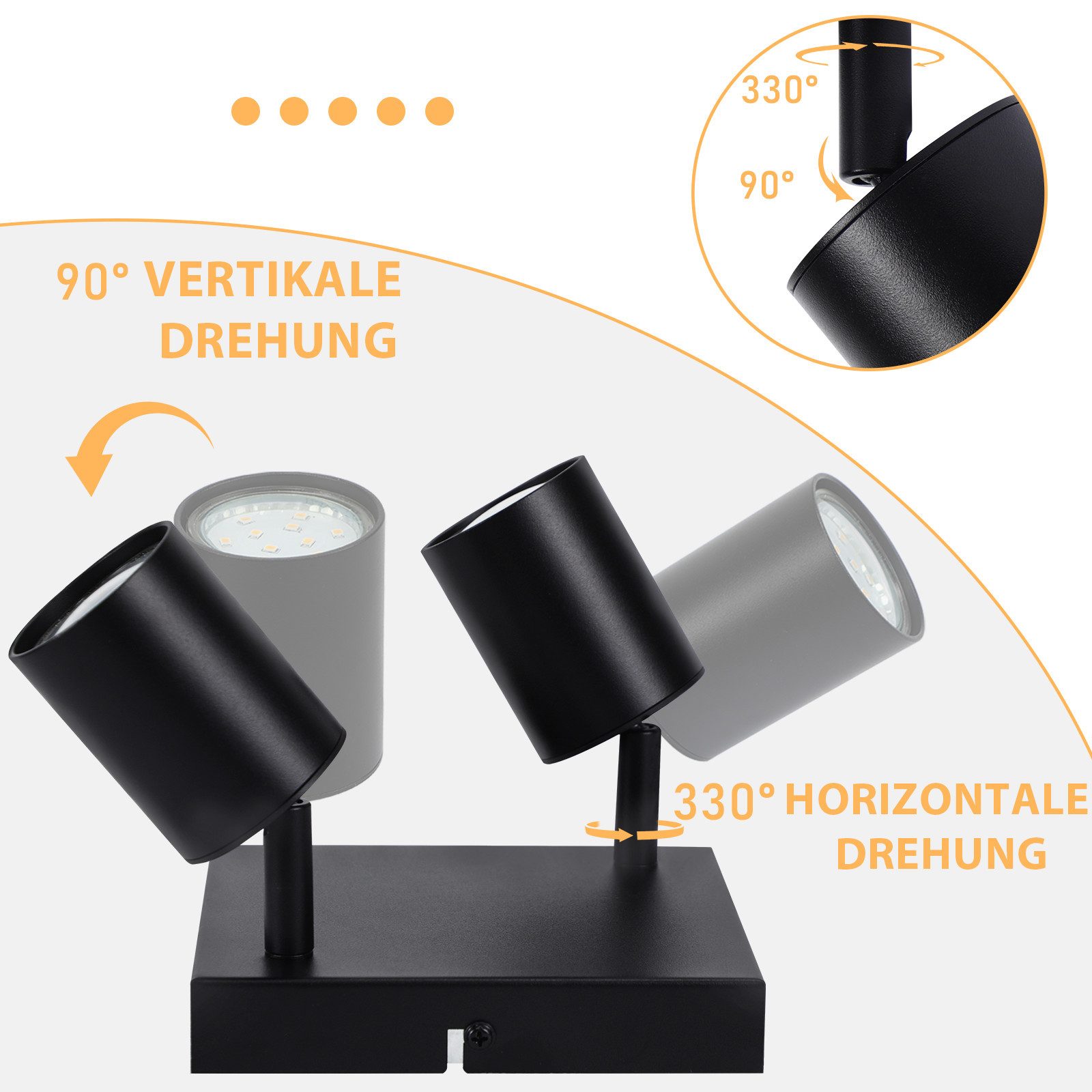 Flexible et rotatif : ce spot de plafond peut être tourné à 90° verticalement et à 330° horizontalement, vous pouvez régler l'angle du spot de plafond selon vos souhaits pour créer des effets d'éclairage ciblés
