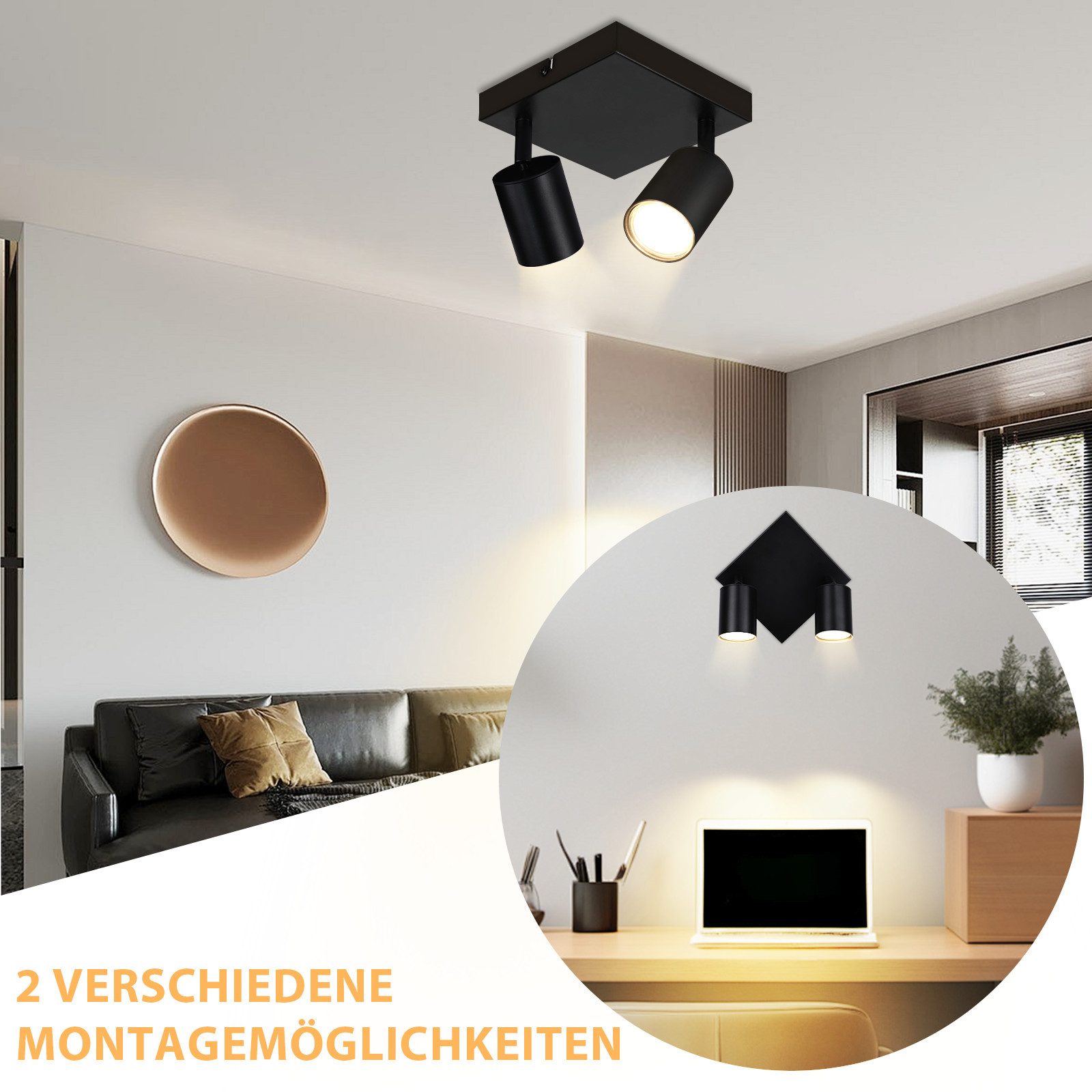 | Libellé | NETTLIFE Plafonnier salon 2 ampoules noir GU10 plafonnier pivotant spot intérieur moderne pour chambre cuisine |