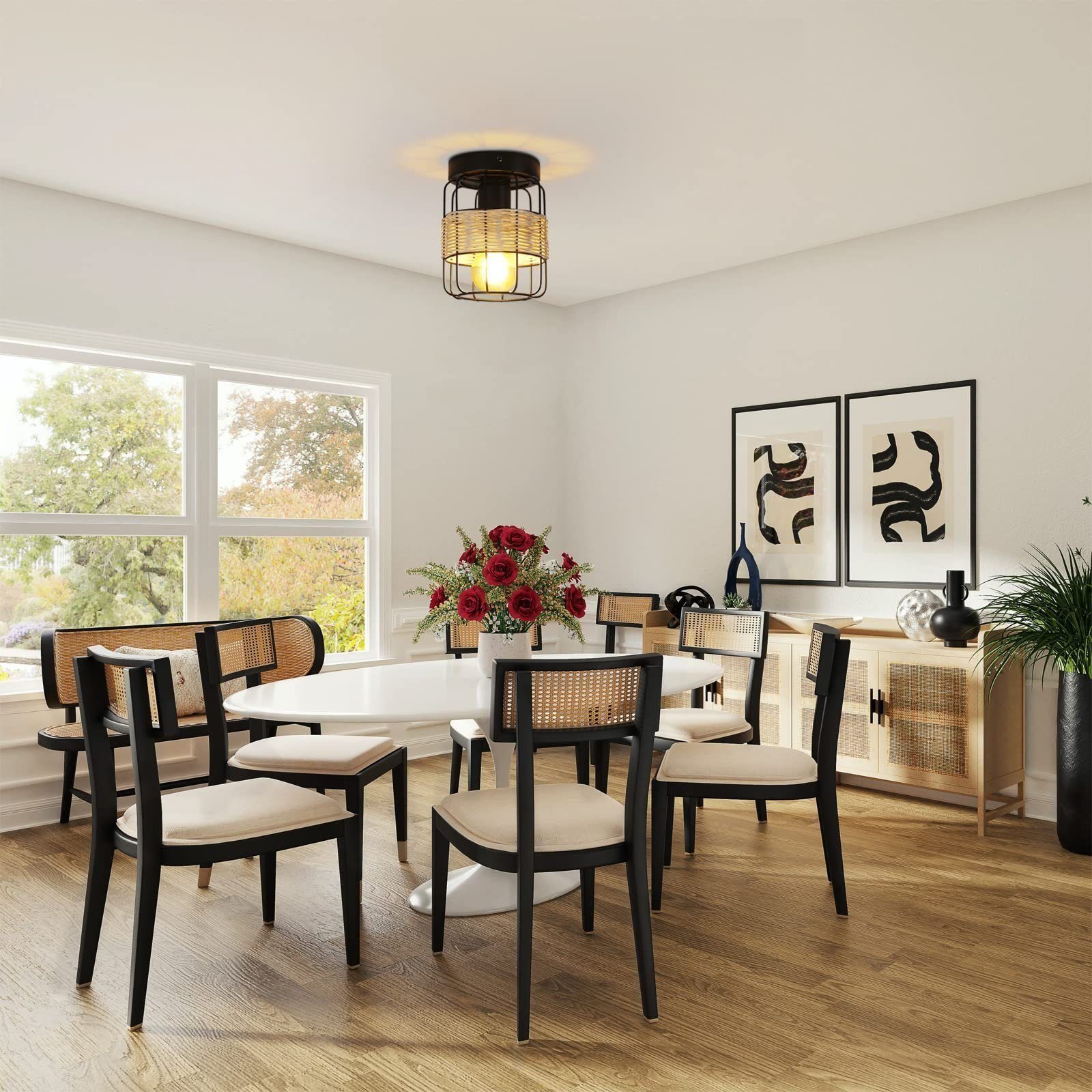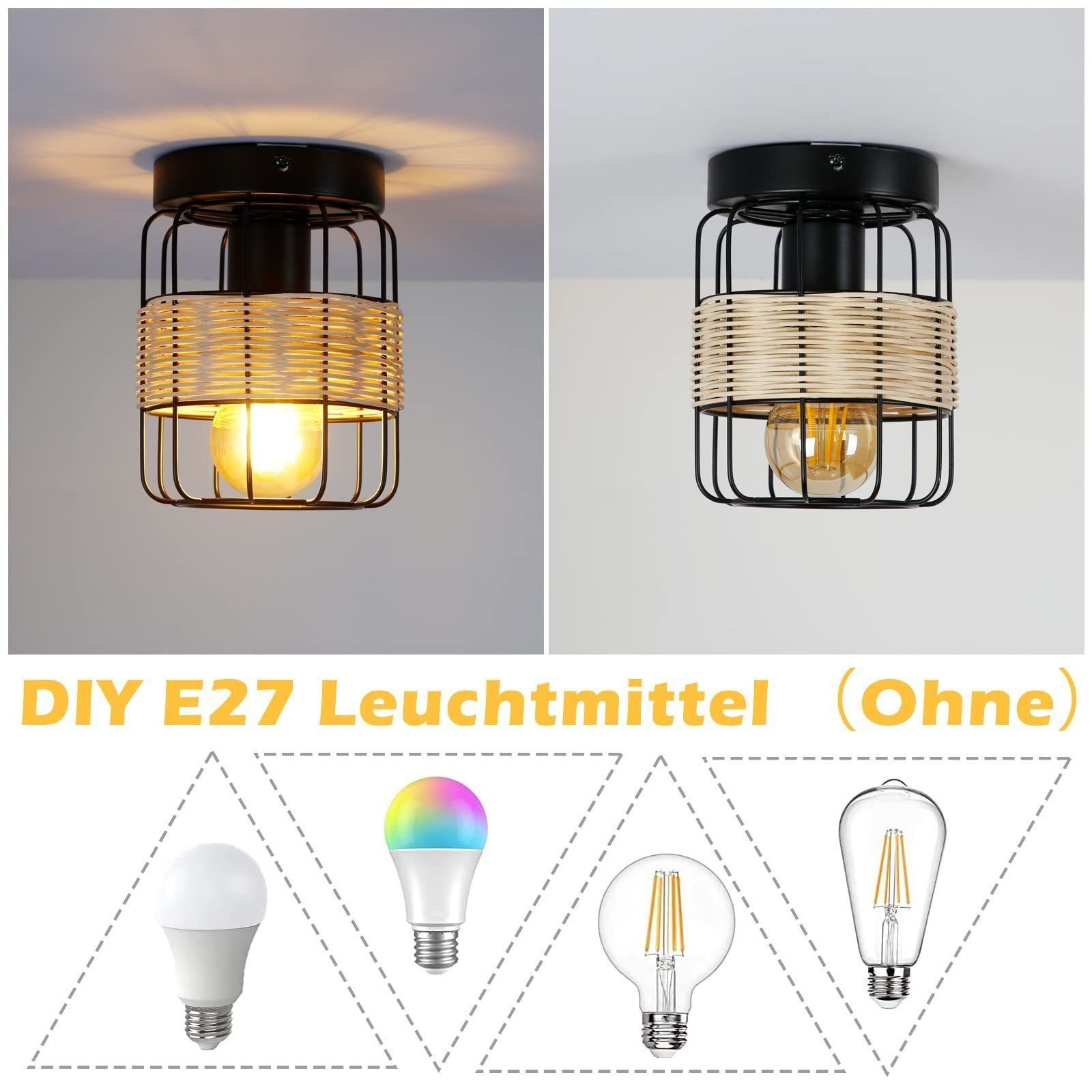 | Libellé | NETTLIFE Plafonnier Vintage E27 Spot Noir Lampe en Rotin Industriel Rétro Boho Métal Bambou Lampe de Cuisine pour Salon Couloir Entrée |