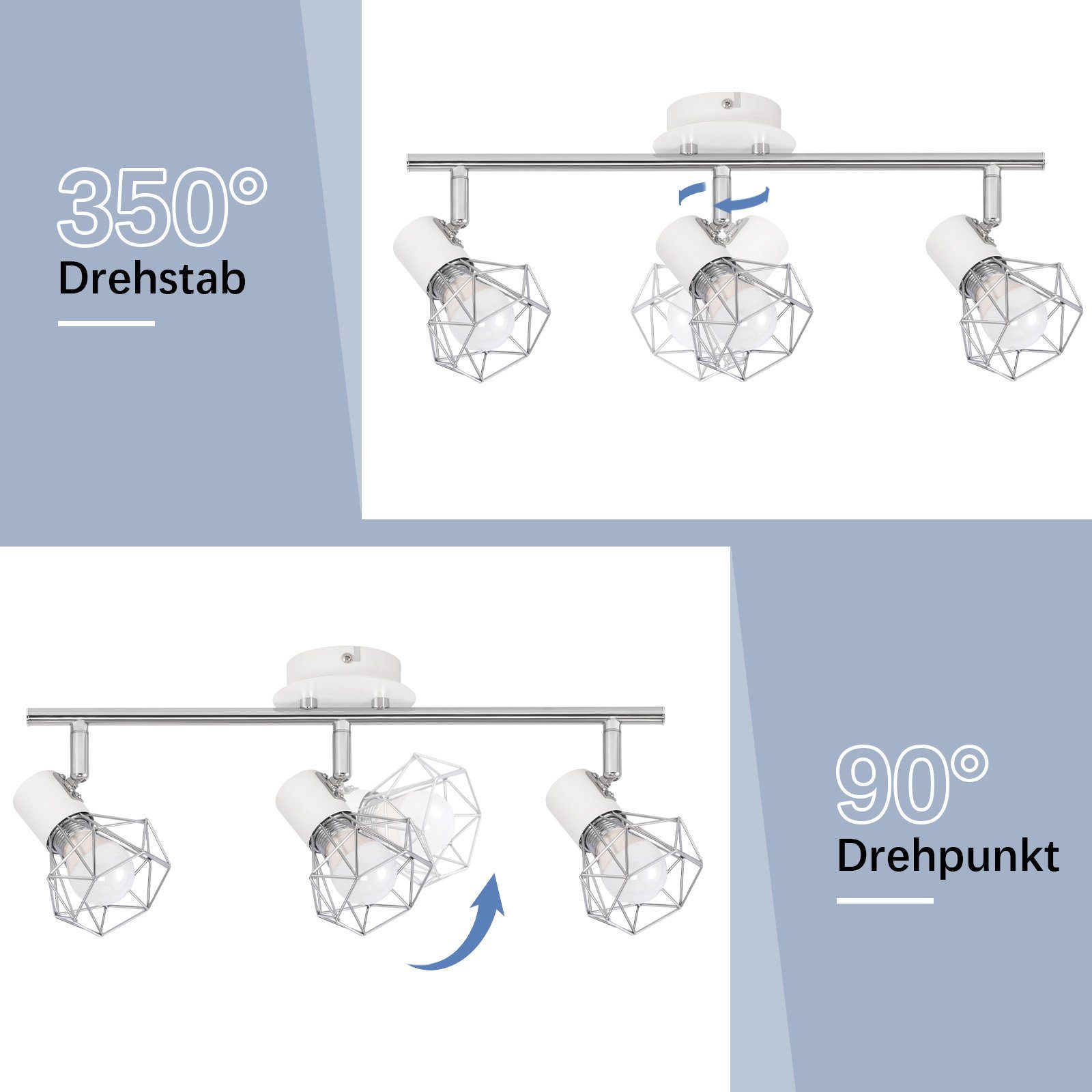 【Douille standard E14】 Chaque abat-jour de ce plafonnier à 3 ampoules remplaçables par spot dispose d'une douille E14 intégrée pour ampoules Max 25 watts *3. Le spot de plafond vintage convient à toutes les lampes à économie d'énergie E14, ampoules et lampes LED. Conseils : Ampoules non incluses. Vous pouvez également choisir des ampoules de différentes couleurs (blanc chaud/blanc froid).