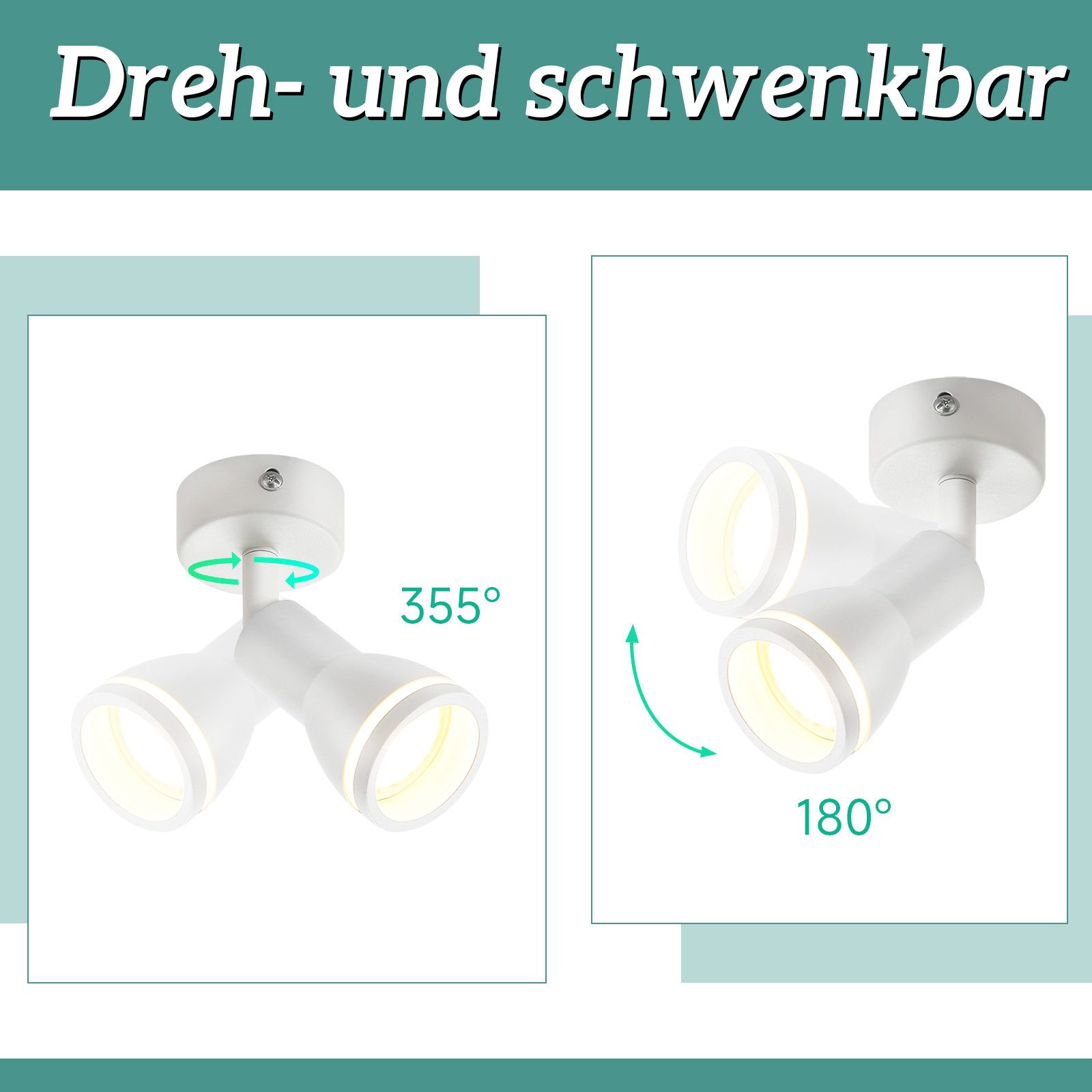 HAUTE FLEXIBILITÉ : Les spots de plafond peuvent être réglés de haut en bas de 180° et pivotés de 355°. Cela permet un éclairage ciblé de différentes zones de la pièce et répond aux besoins d'éclairage individuels pour créer un environnement lumineux agréable.