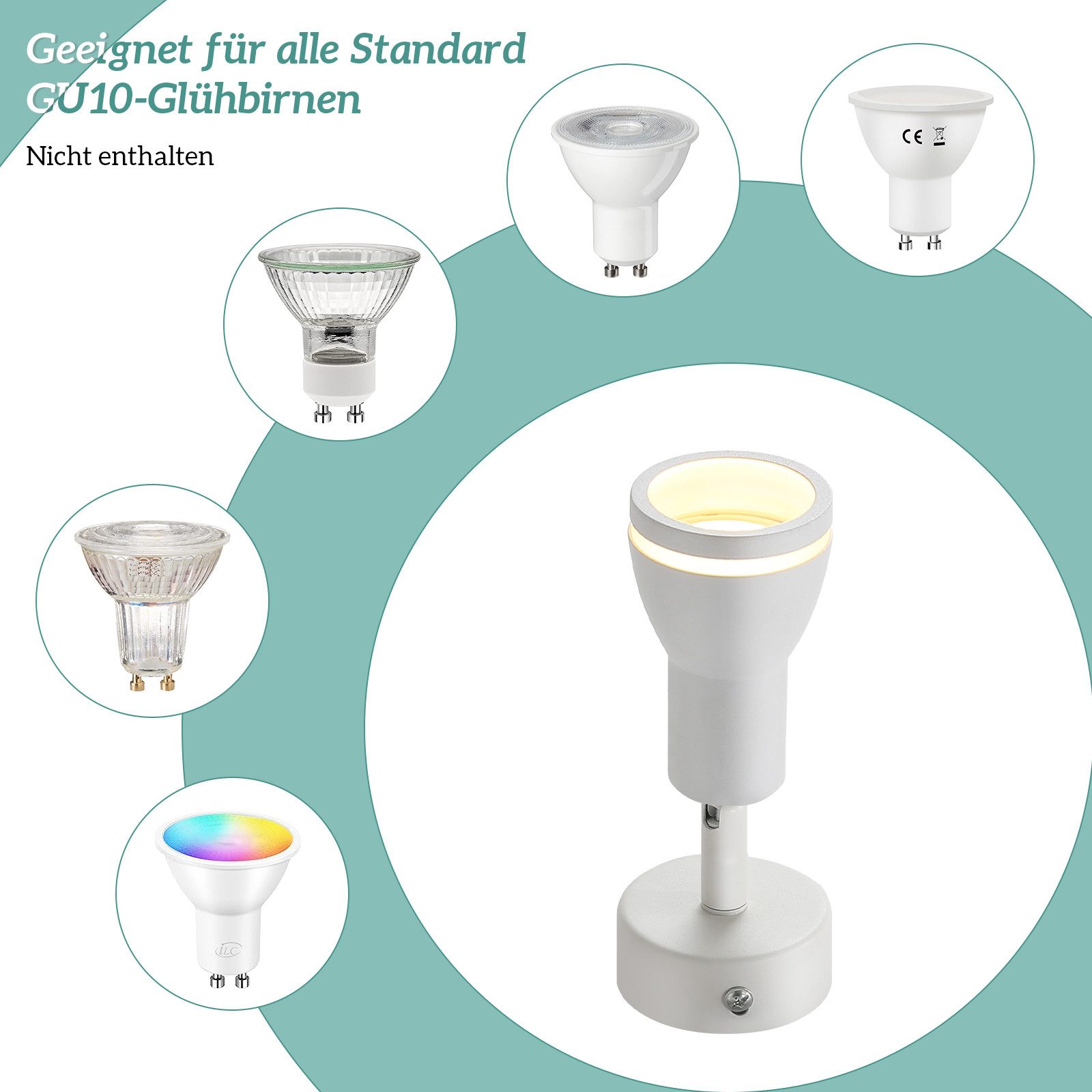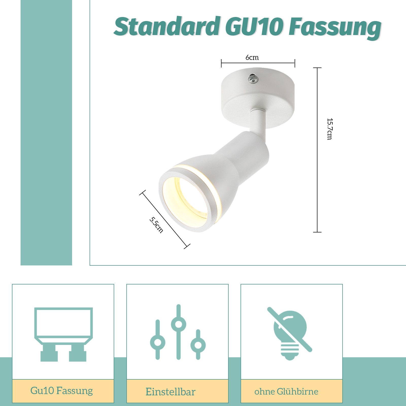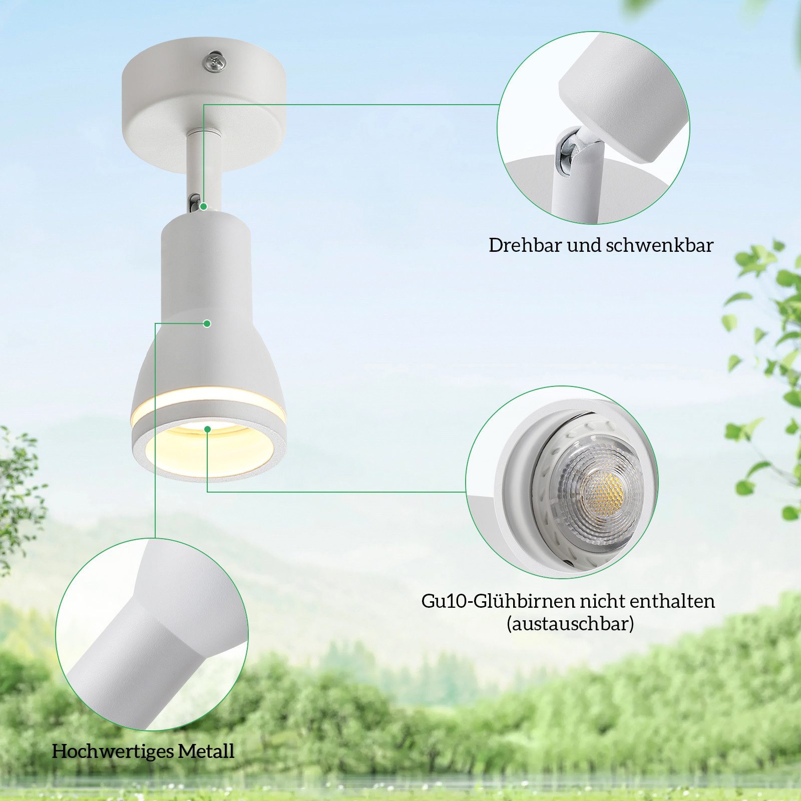 AMPOULES INTERCHANGEABLES : Le spot de plafond pour couloir est compatible avec les lampes GU10 jusqu'à 40 W maximum. Selon vos besoins, vous pouvez choisir entre des lampes GU10 blanc chaud, blanc froid ou RGB. Veuillez noter que les ampoules ne sont pas incluses