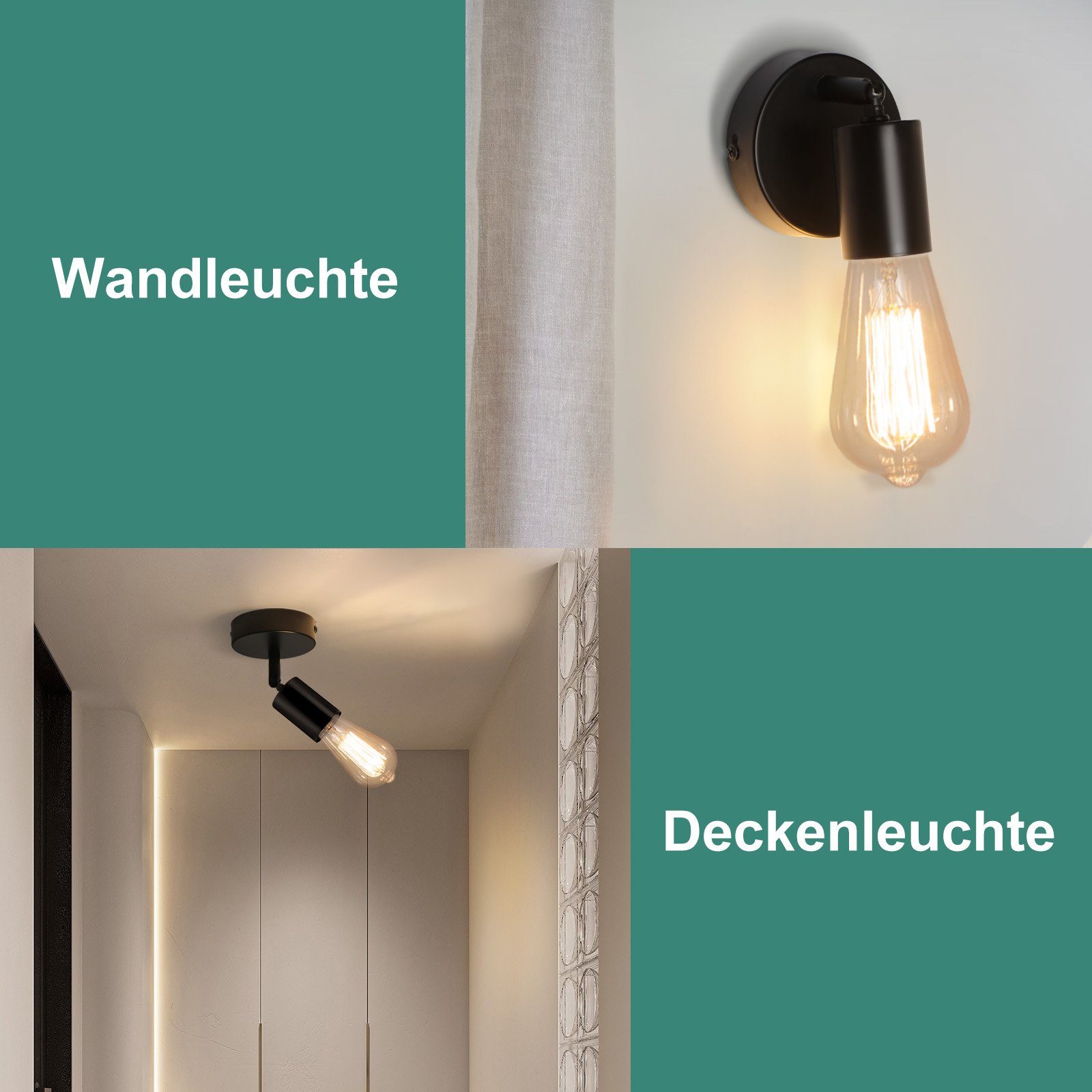 | Libellé | NETTLIFE Spot E27 noir lampe murale vintage pivotante à 350°lampe de cuisine pour salon, chambre à coucher Max.40 W |