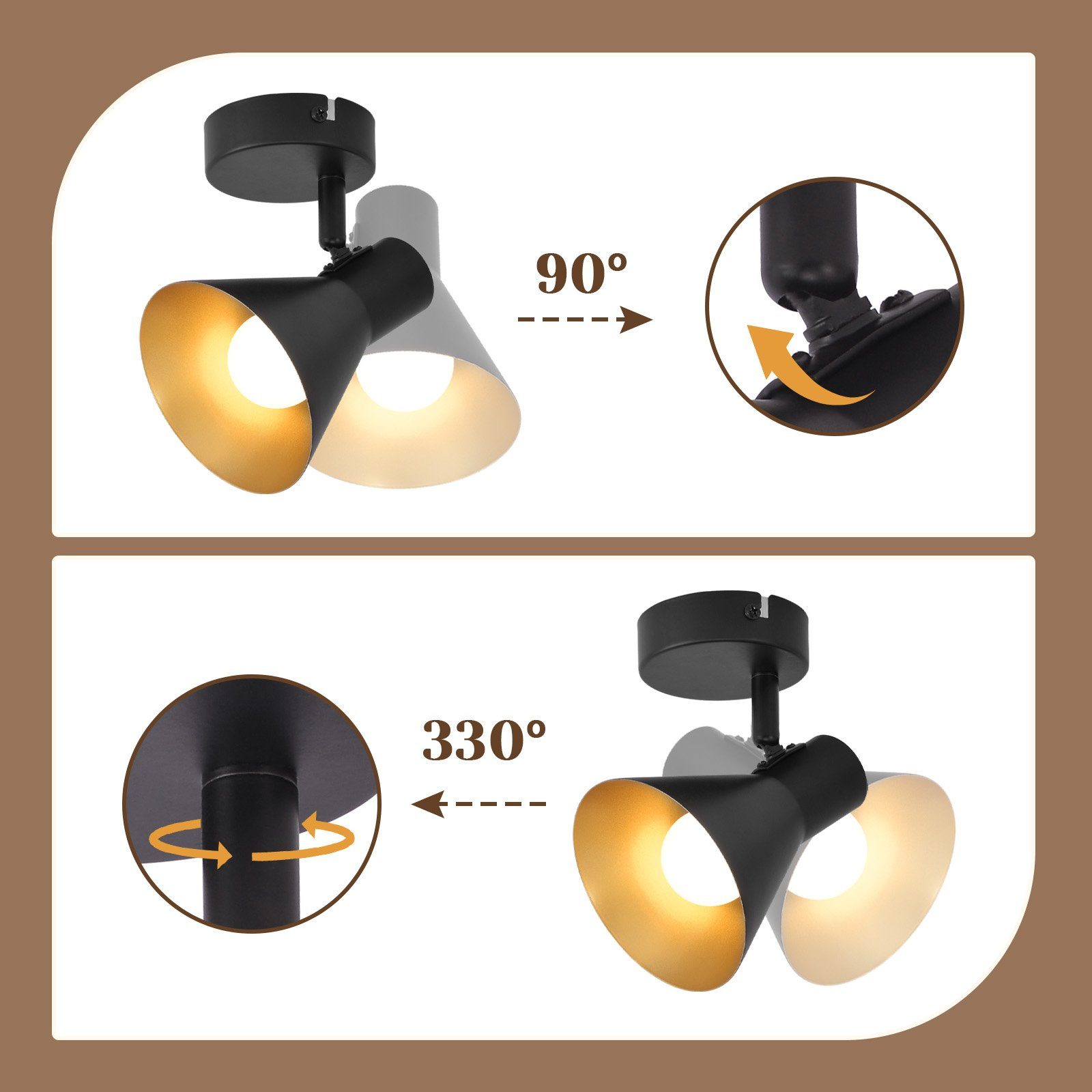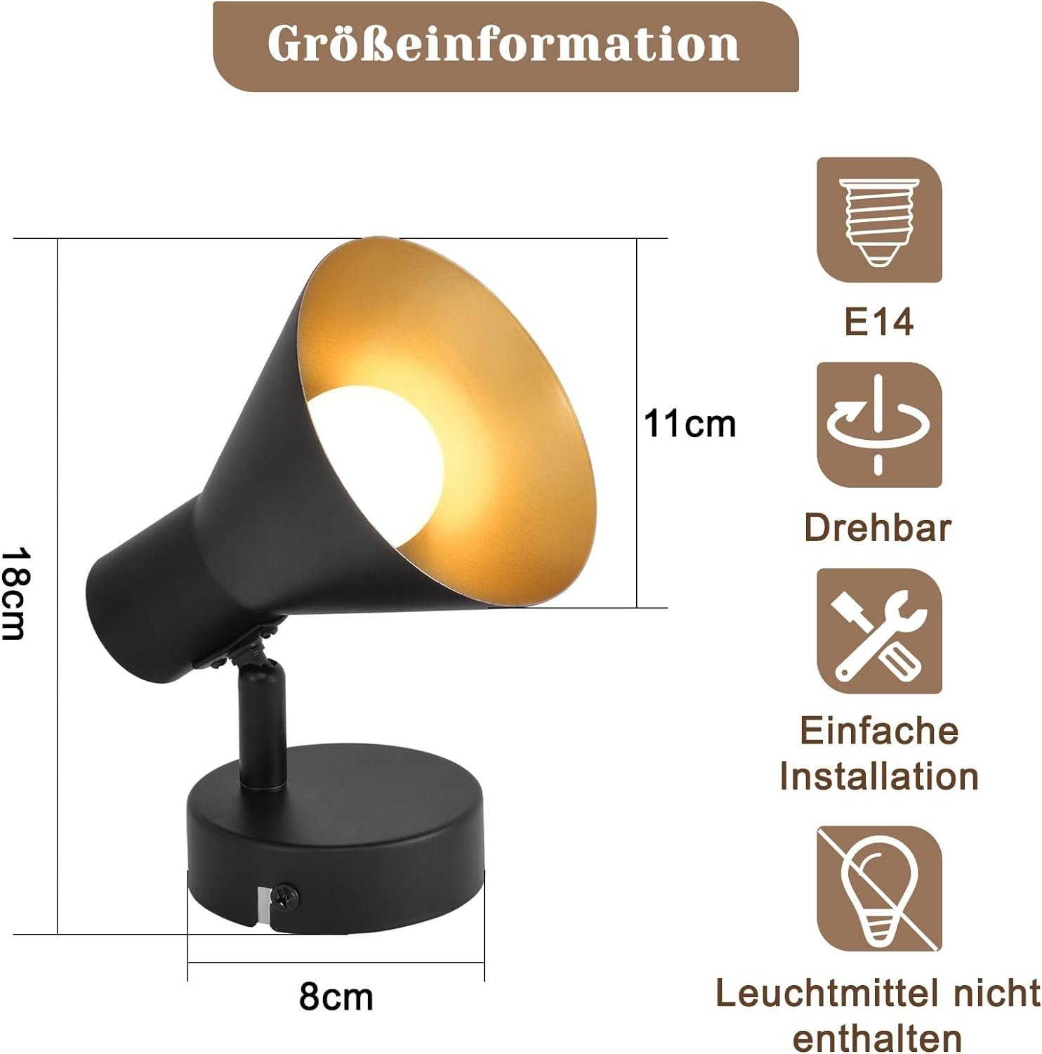 | Libellé | NETTLIFE Spots E14 Noir rétro Pivotant 330°en métal Spot Murale Lampe de Couloir pour Chambre Salon Escalier |