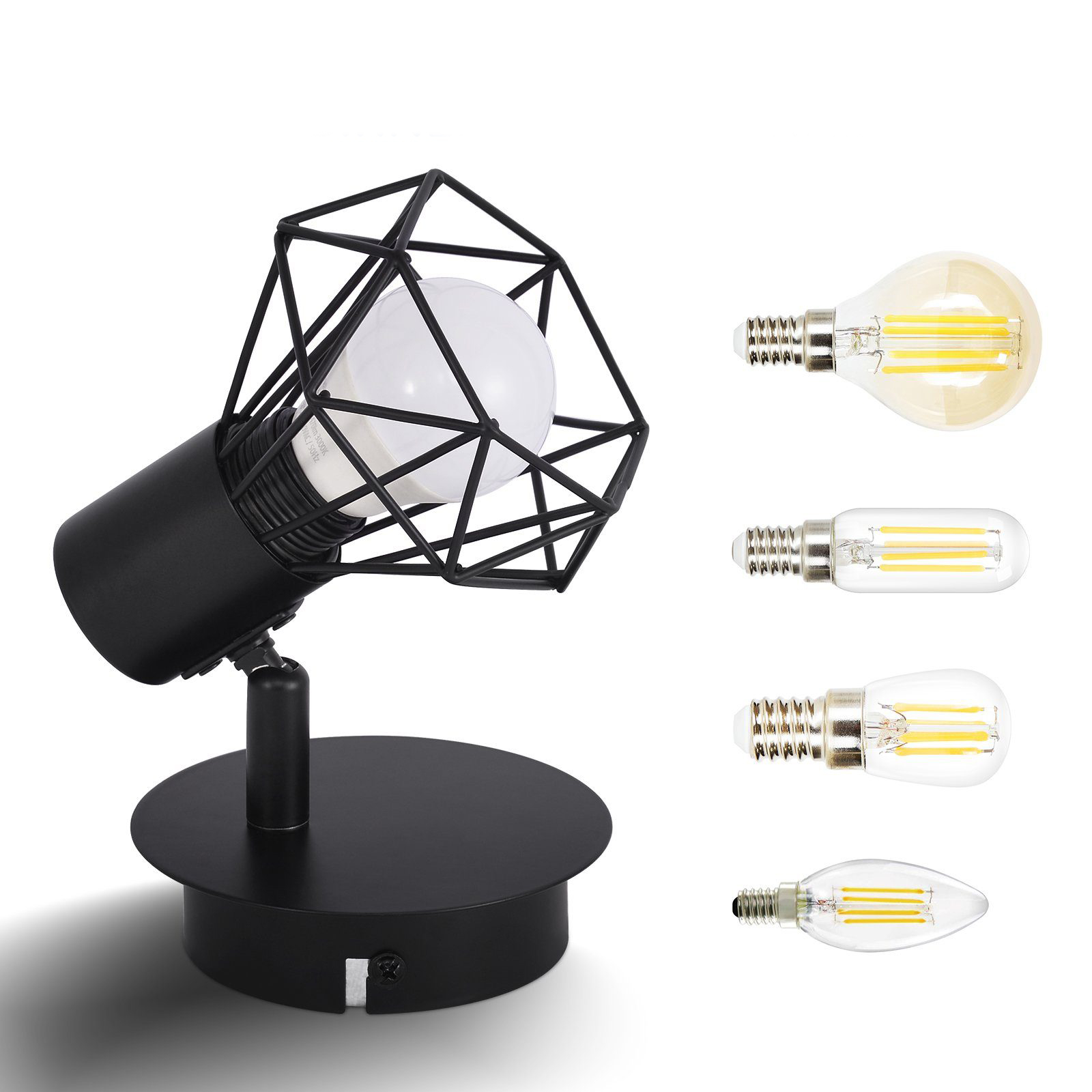 NETTLIFE Spots muraux noirs Spots muraux rétro - Applique E14 Réglable Vintage Lampe murale 1 flamme 350°