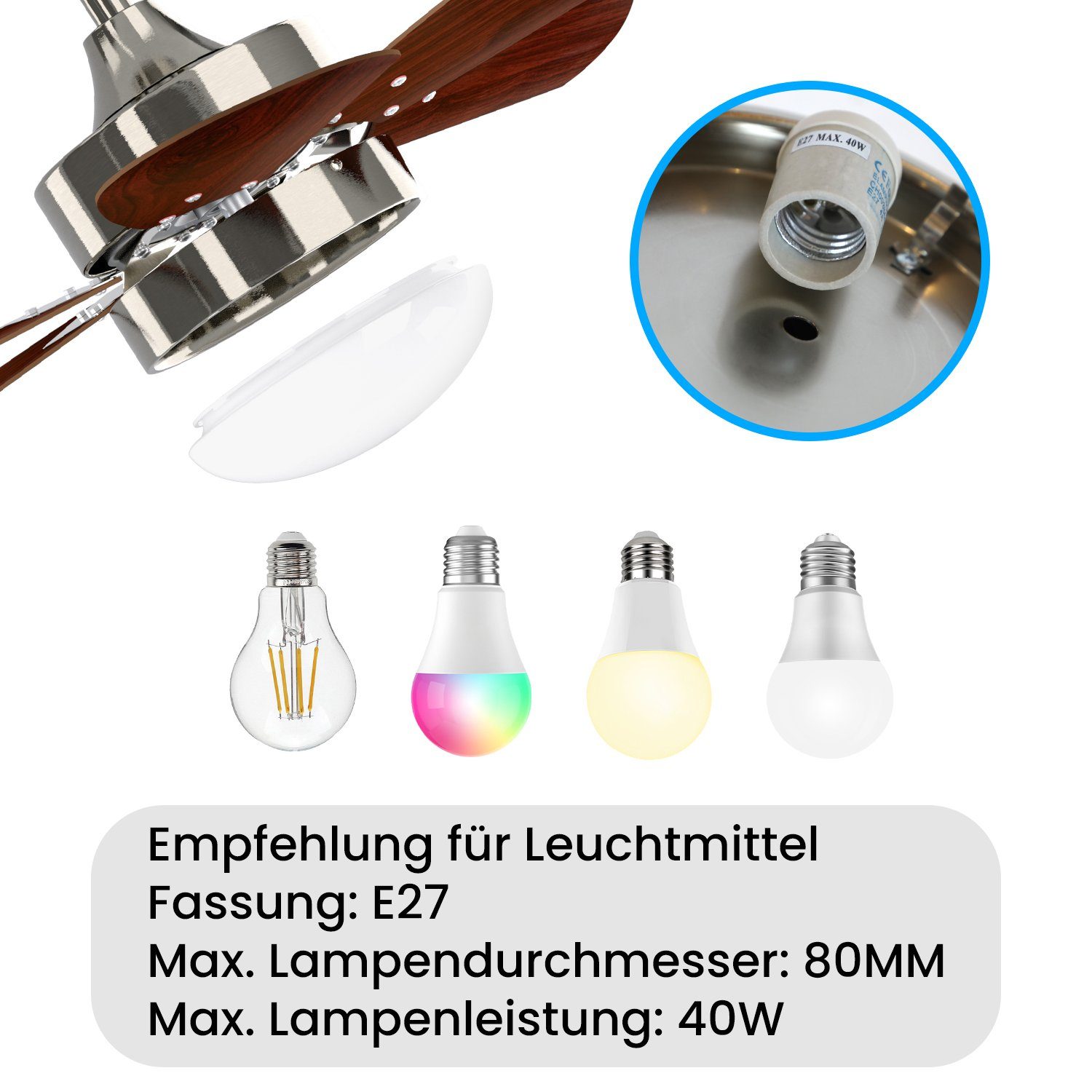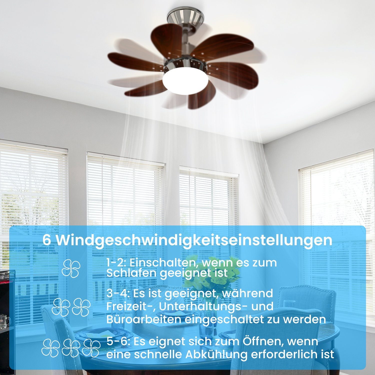 [Multifonctionnel] Le ventilateur de plafond est un appareil polyvalent qui fournit non seulement de la lumière, mais aussi de l'air frais par temps chaud. [Économique] En comparaison avec un ventilateur et une lampe séparés, le ventilateur de plafond permet d'économiser de l'énergie et de l'électricité en combinant les deux fonctions. [Pratique] Le ventilateur de plafond assure une circulation d'air rafraîchissante pendant les mois d'été et offre également une fonction d'éclairage en hiver. [Silencieux] Ce ventilateur de plafond a un design silencieux, créant une atmosphère agréable sans bruit. [Vitesse de ventilation réglable] La lumière du ventilateur de plafond permet d'ajuster la vitesse de ventilation, offrant ainsi un confort accru selon les besoins de l'utilisateur. [Minuterie + Design Silencieux] Grâce aux différentes options de vitesse, vous pouvez ajuster précisément le débit d'air pour divers scénarios. Même à vitesse élevée, le bruit reste faible, ne perturbant pas votre sommeil, même en utilisation nocturne. Le ventilateur est également doté d'une fonction minuterie réglable jusqu'à 4 heures via la télécommande. Remarque : ce produit doit utiliser une source lumineuse LED E27 ; les ampoules à filament de tungstène E27 traditionnelles ne peuvent pas être utilisées.
