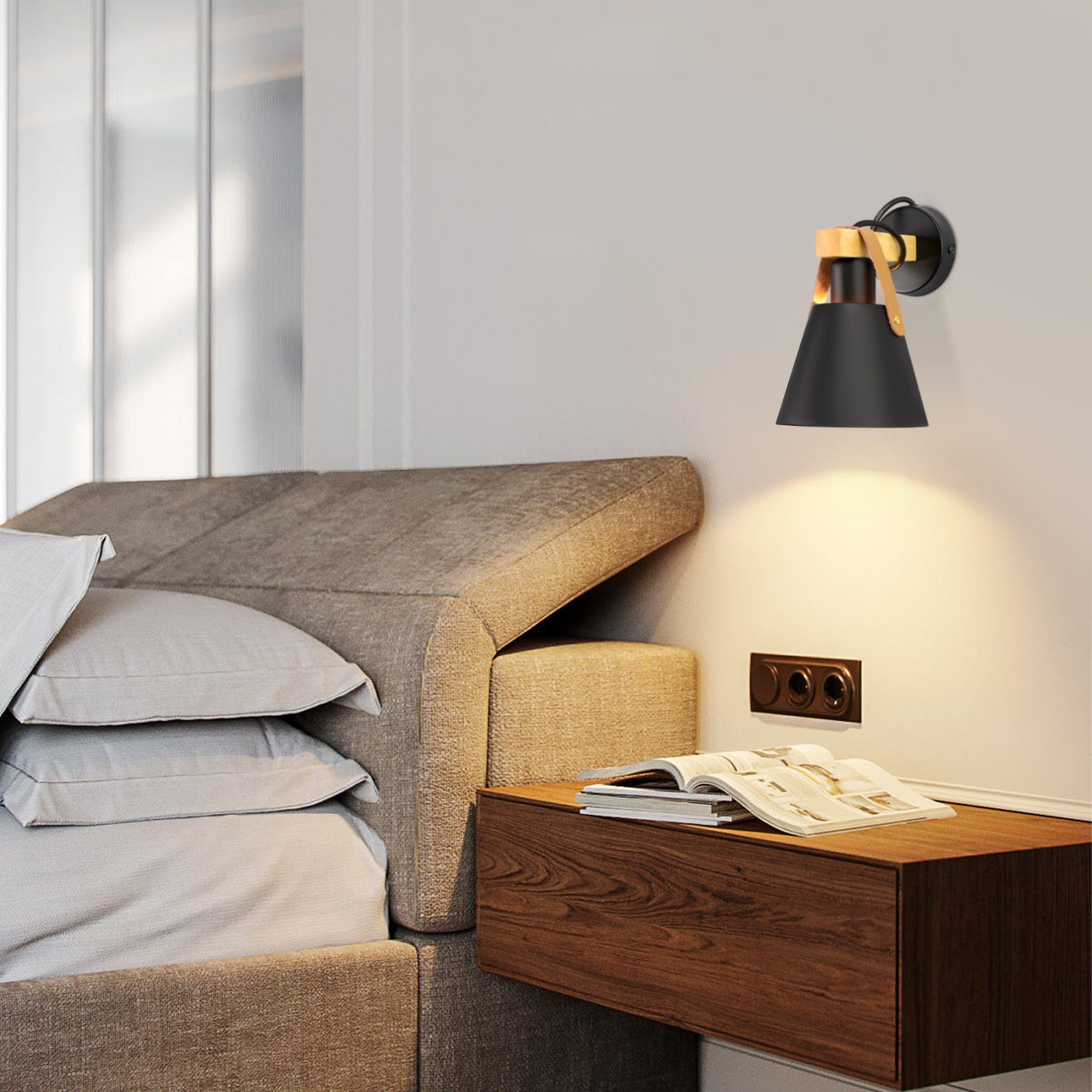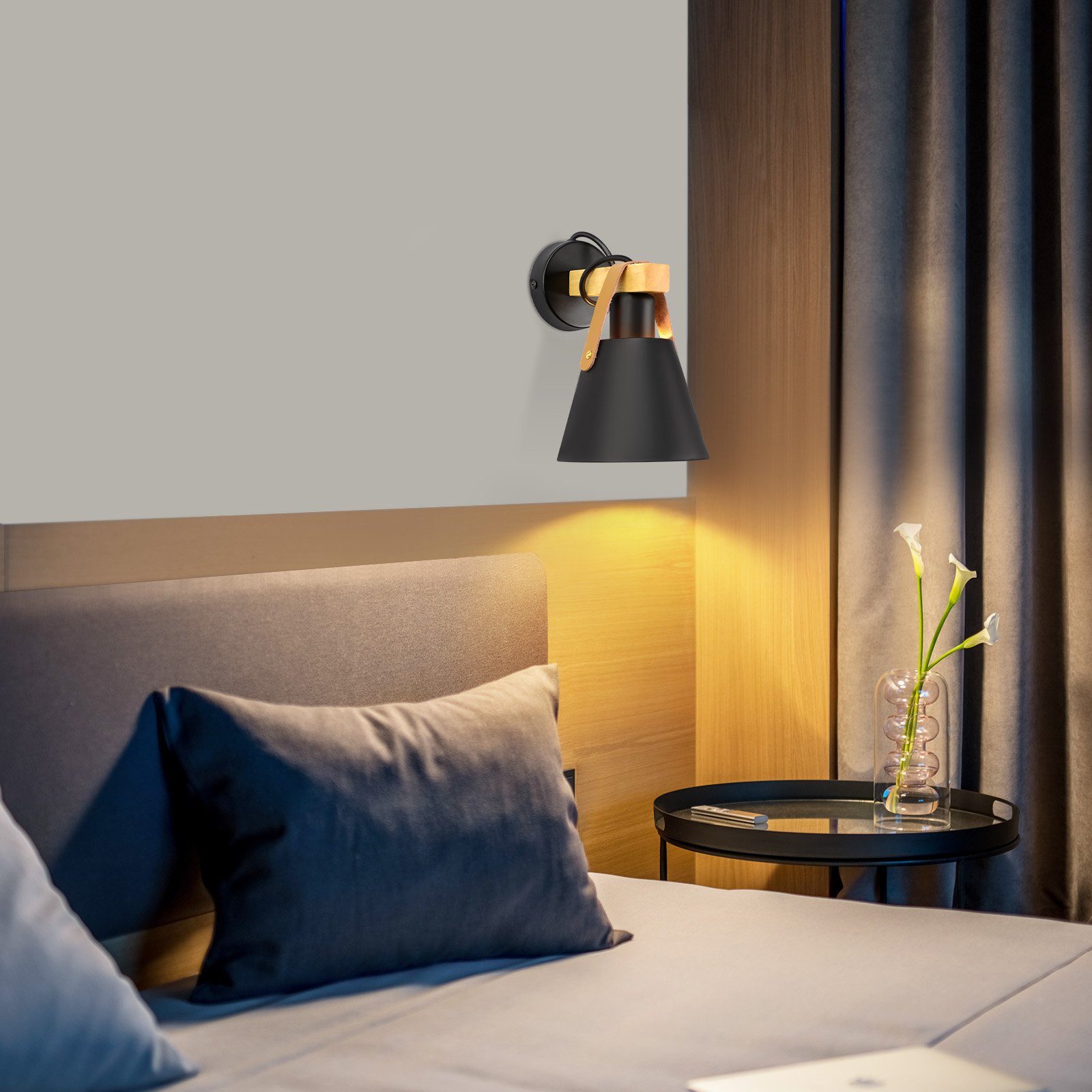 NETTLIFE Vintage Applique murale rétro E27 en noir industriel intérieur éclairage mural en bois cuir plas